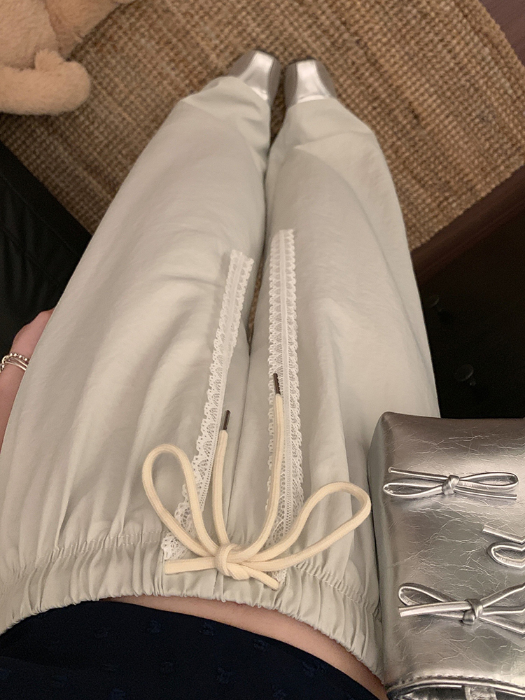 실사 2026 새로운 펌프 로프 레이스업 캐주얼 루즈핏 미니멀리즘 마이크로 나팔 바지 아이들