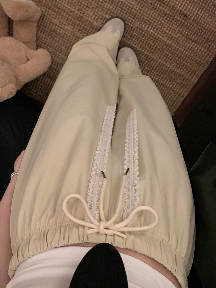 실사 2026 새로운 허리밴드 펌프 로프 반바지 슬림해 보이는 와이드 레그 팬츠 단색 캐주얼 바지 여성