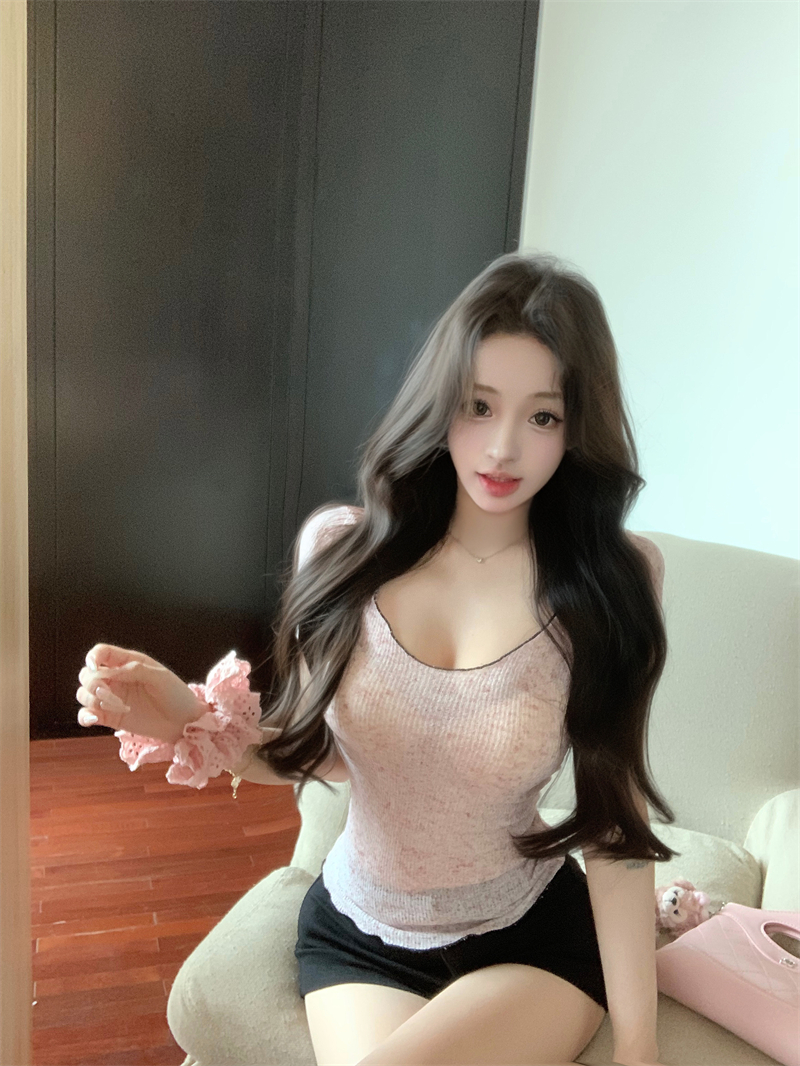 실사 정가 핑크색 민소매 조끼 여성 드레스 디스플레이 몸 타이트 허리 수축 슬림해 보이는 타이트 스커트 쇼트 스타일 치마