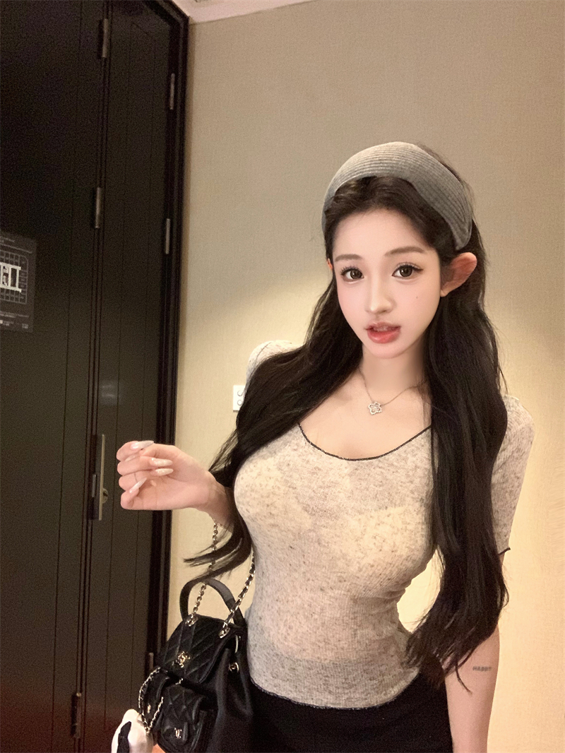 실사 정가 순수한 욕망 V넥 행침 목 슬립 여성 여름 작은 대중 디자인 센스 니트 맨위
