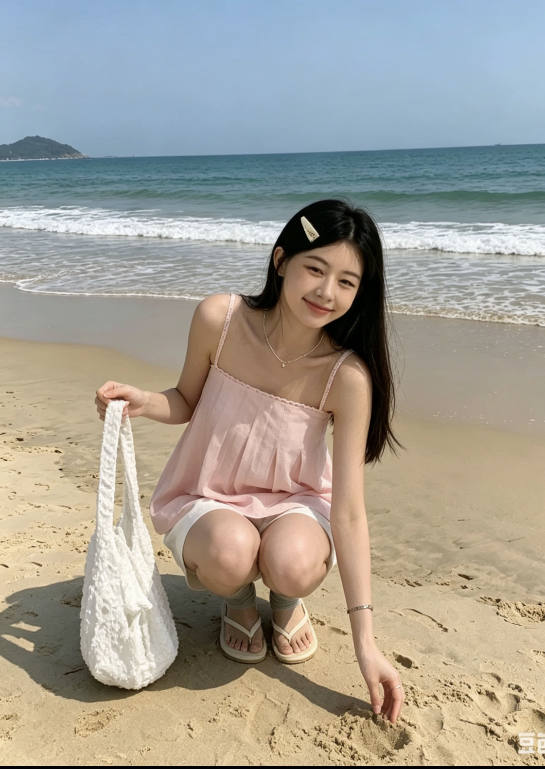 프랑스식 핑크색 쉬폰 점프 슈트 치마 여름 질감 고급 센스 허리 수축 슬림해 보이는 품격 부드러운 바람 요정 롱 스커트