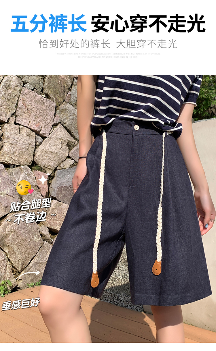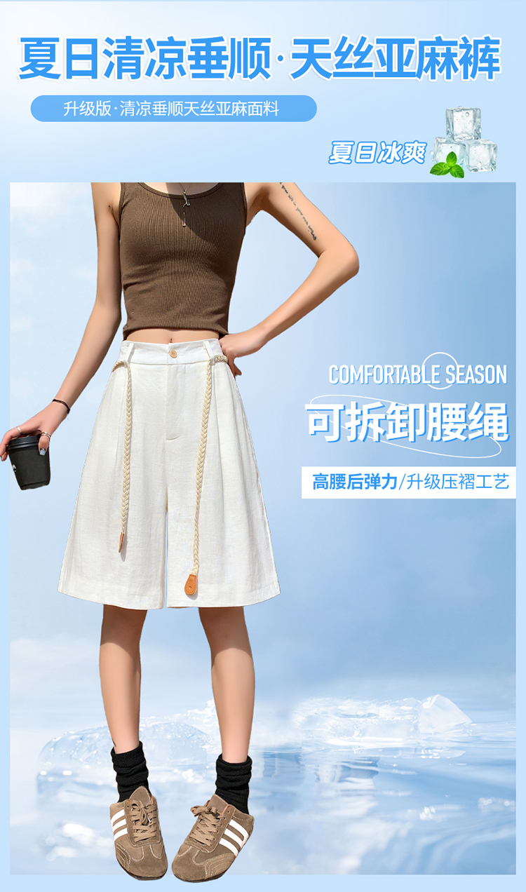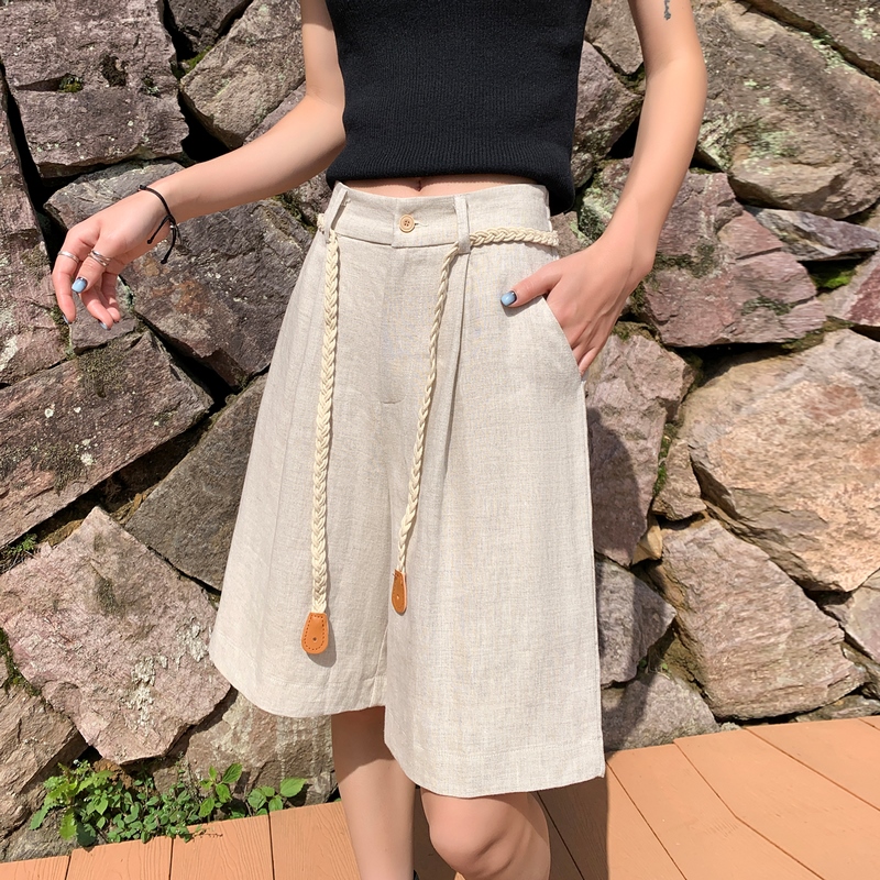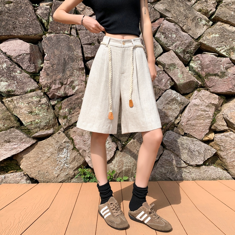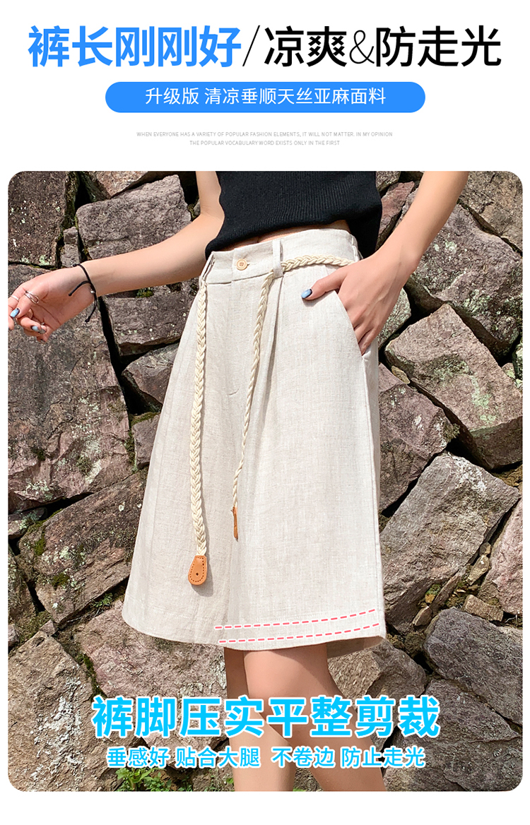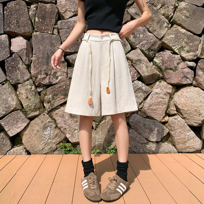 실사 2026 여름 새로운 주간 실크 아마 오부 바지 한 마디 넓은 다리 하이웨이스트 면 린넨 얇은 스타일 반바지 여성