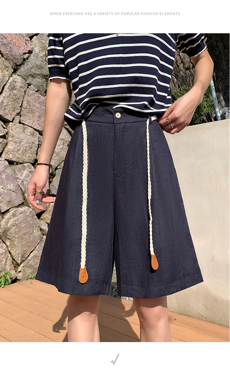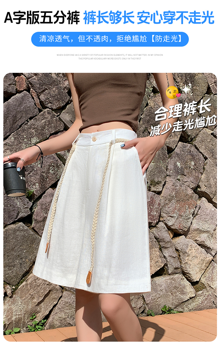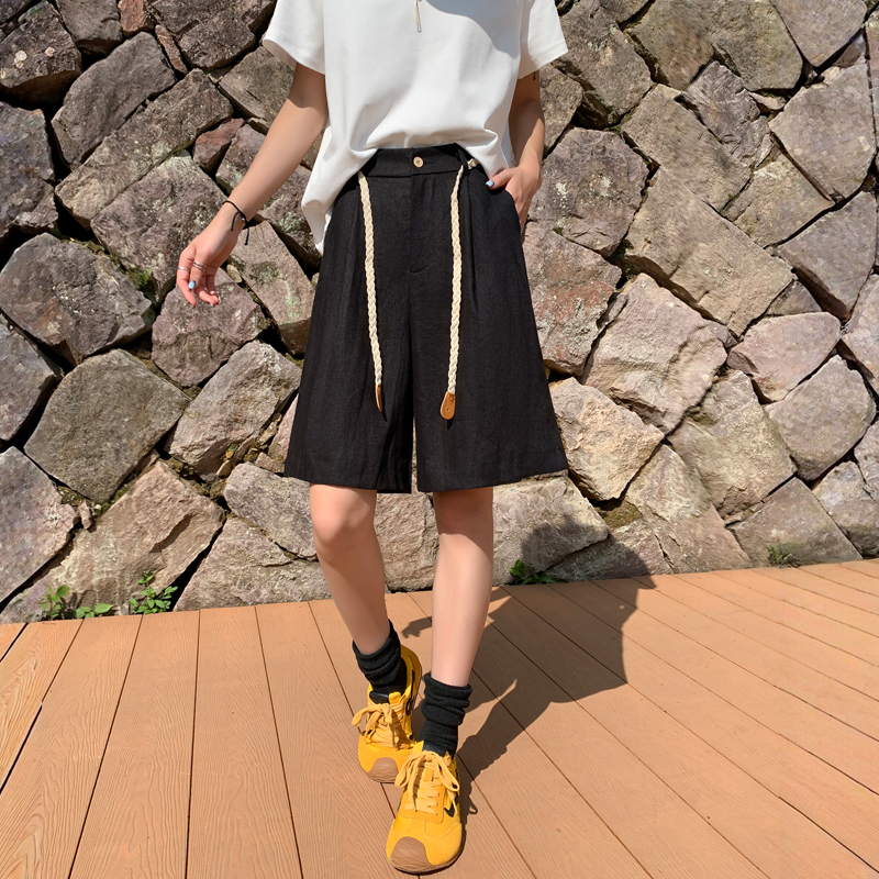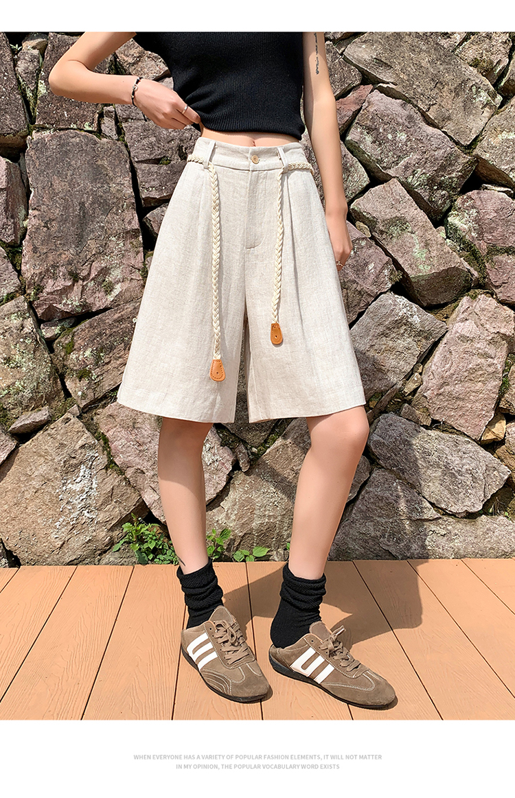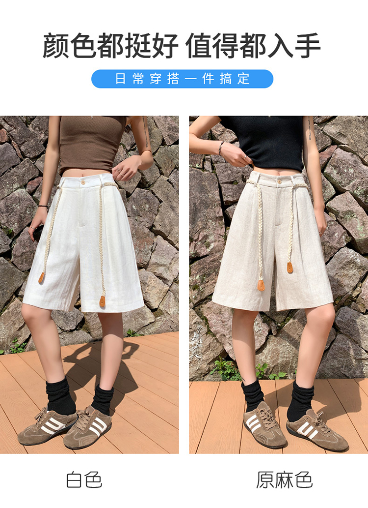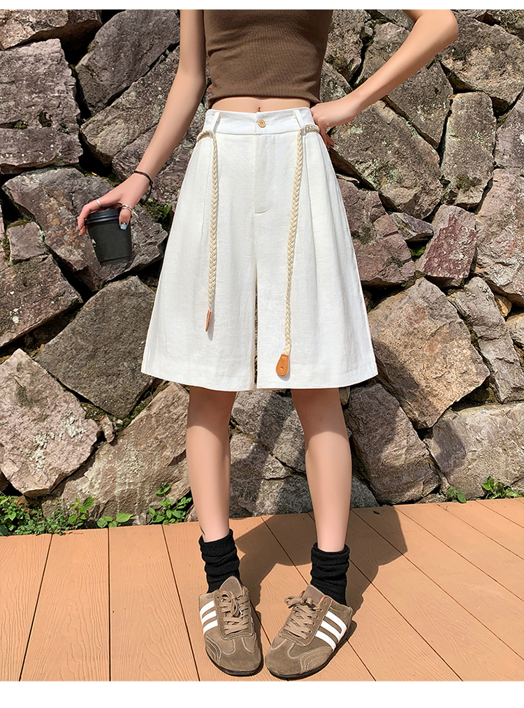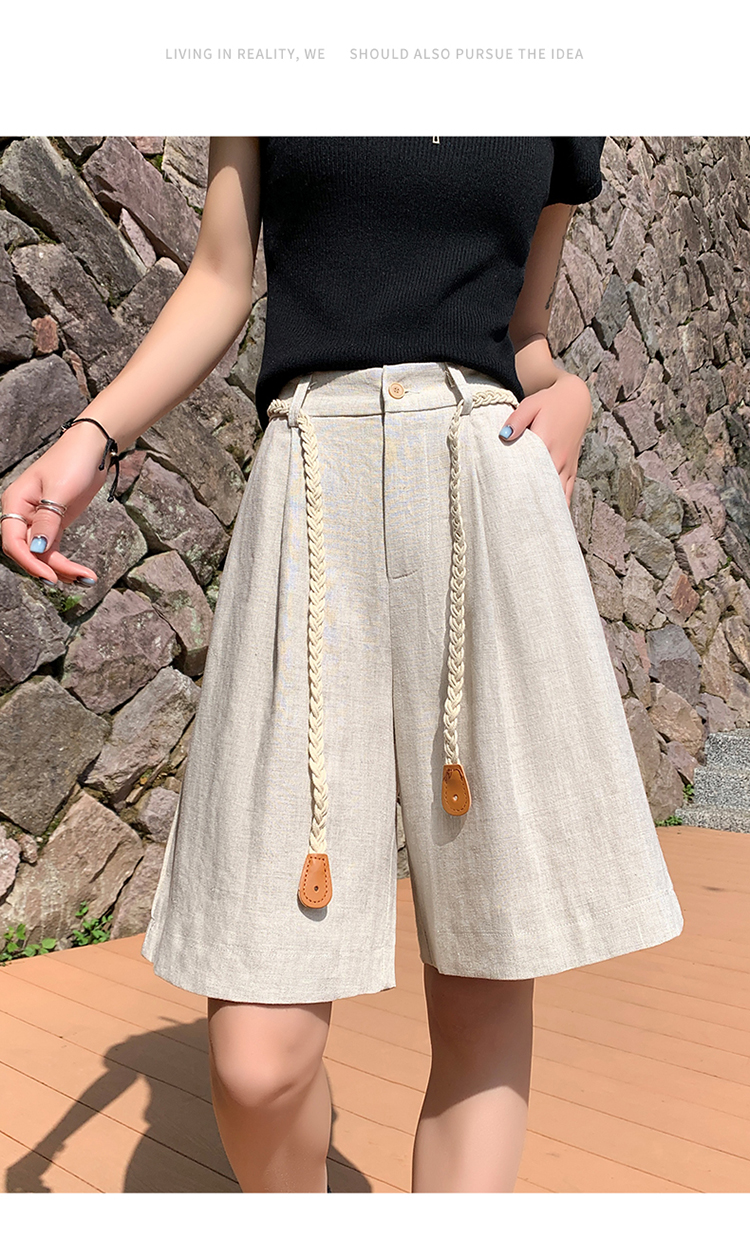 실사 2026 여름 새로운 주간 실크 아마 오부 바지 한 마디 넓은 다리 하이웨이스트 면 린넨 얇은 스타일 반바지 여성