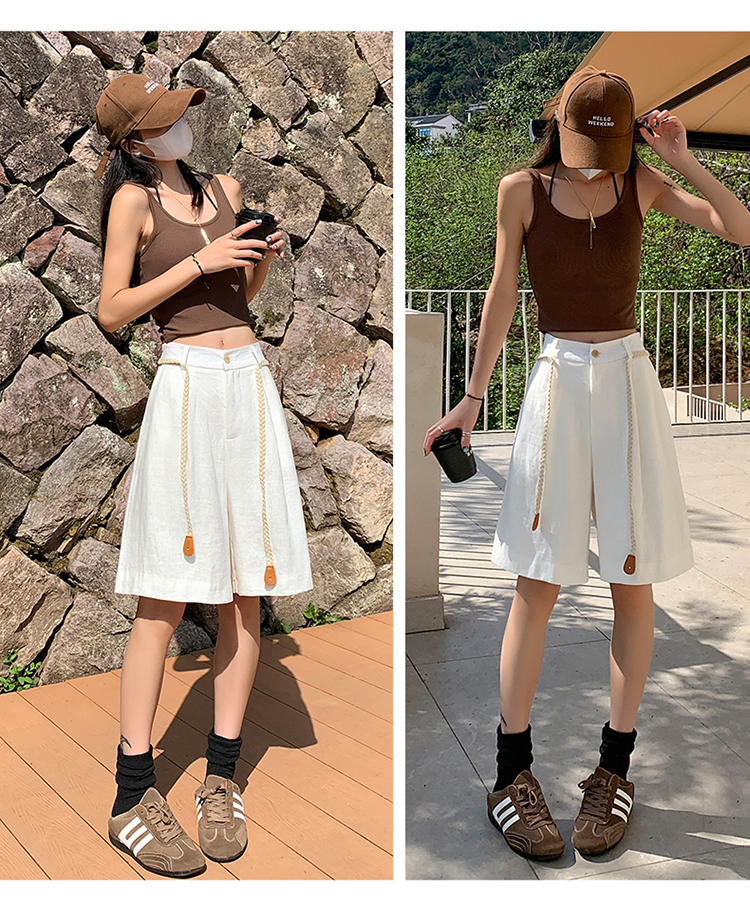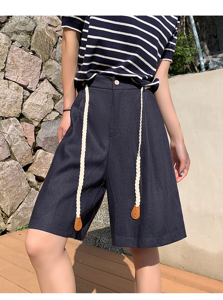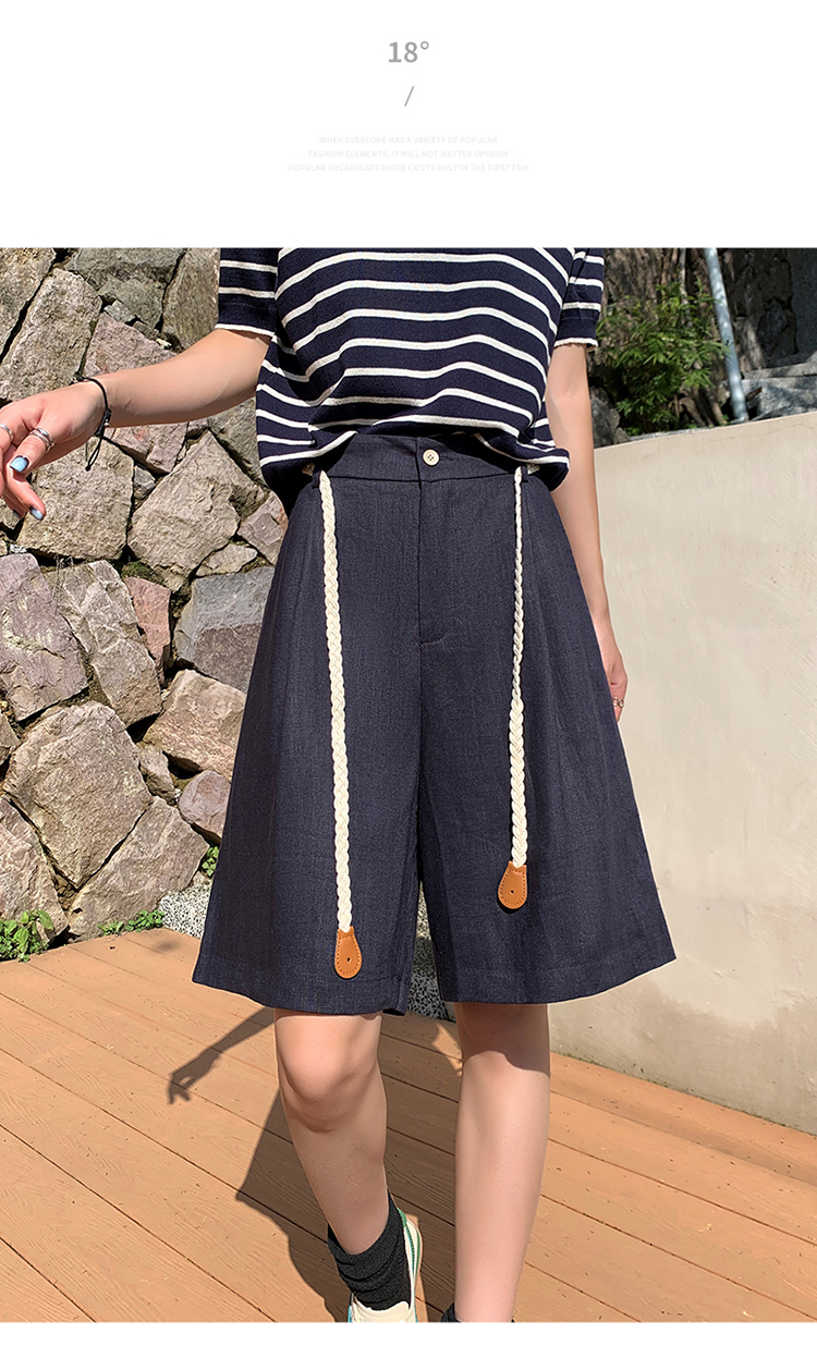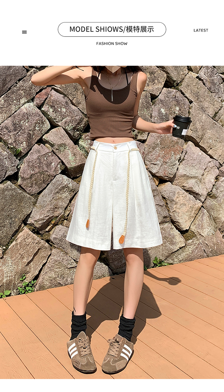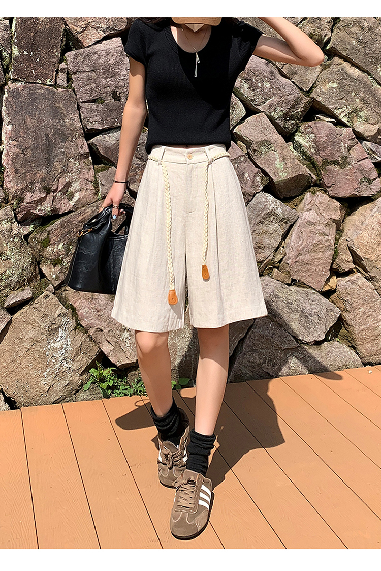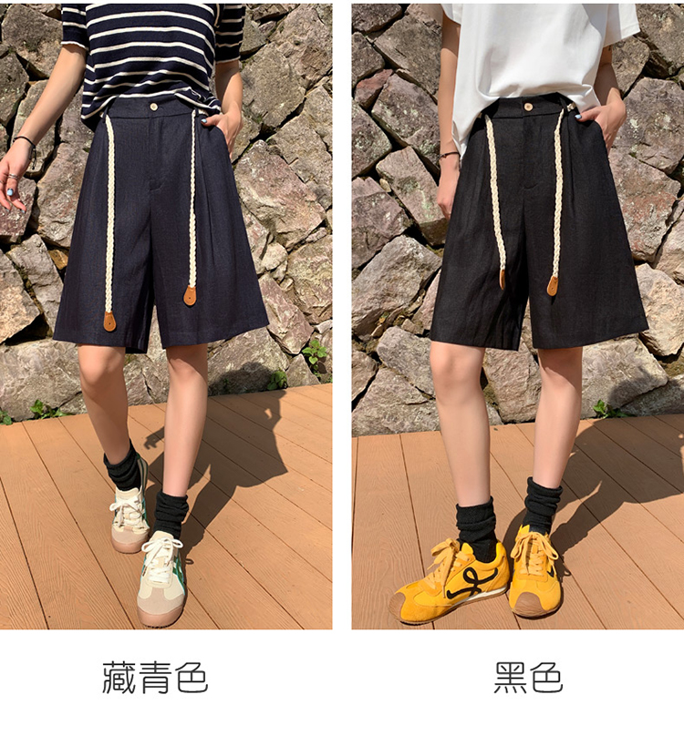 실사 2026 여름 새로운 주간 실크 아마 오부 바지 한 마디 넓은 다리 하이웨이스트 면 린넨 얇은 스타일 반바지 여성