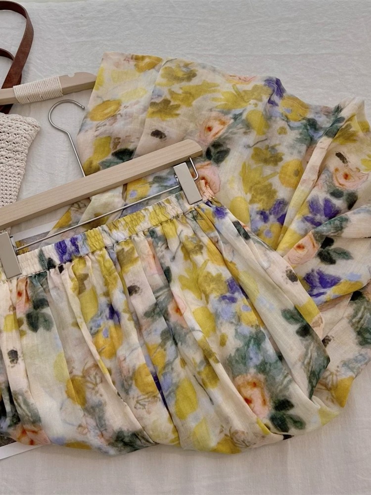 3929 재고 있음 순면 프린트 원단 프랑스식 유화 바람 꽃무늬 반신 스커트 여성 26 새로운 부드러운 바람을 피우다 롱 스커트