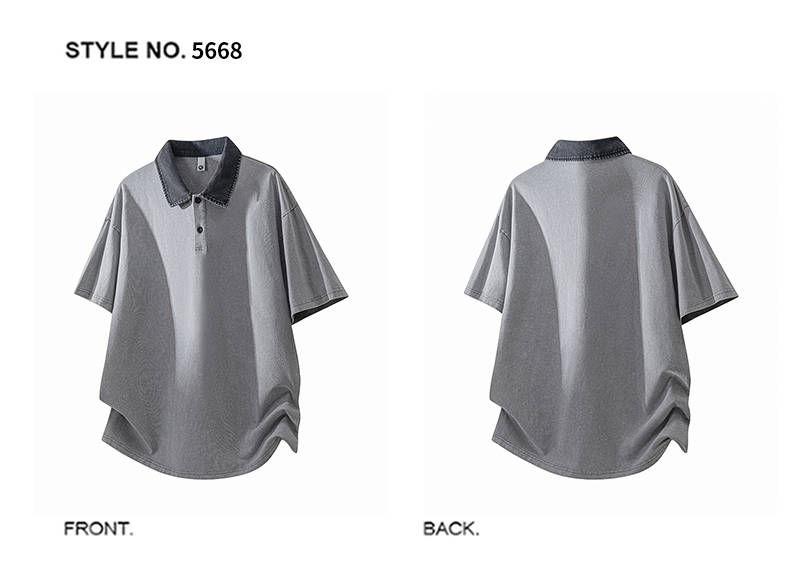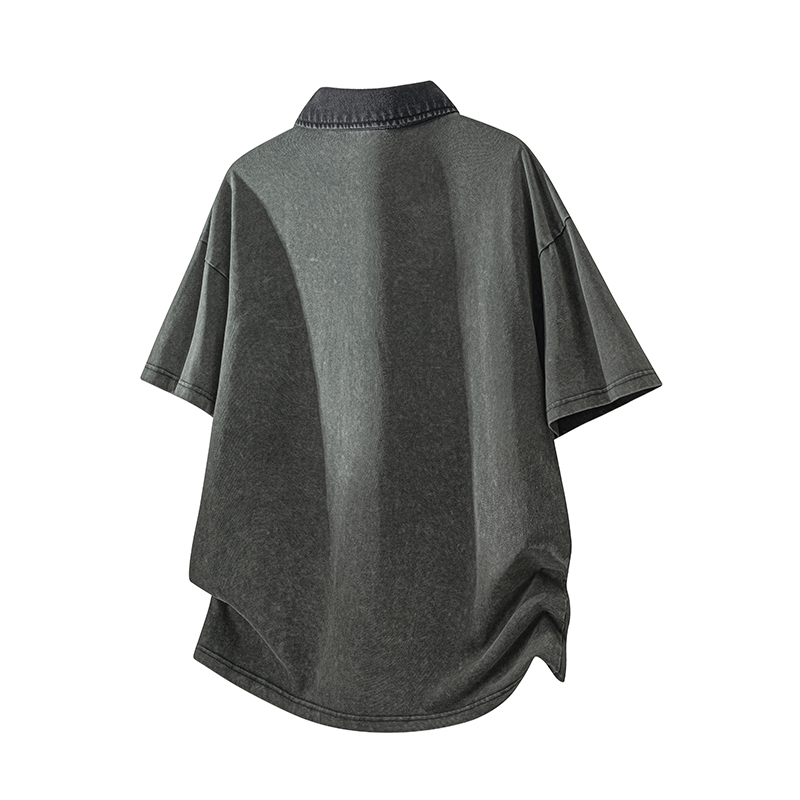 실사 여름 새로운 일본식 POLO 셔츠 남자 구조 섹션 신축성 반팔 단색 폴로 칼라 루즈핏 반소매 티셔츠