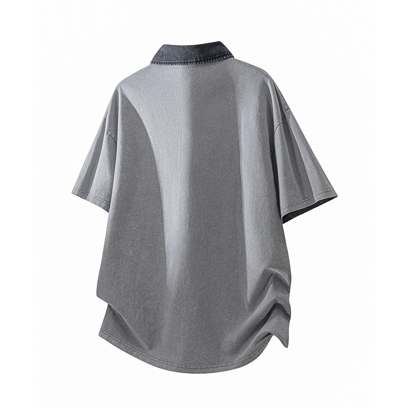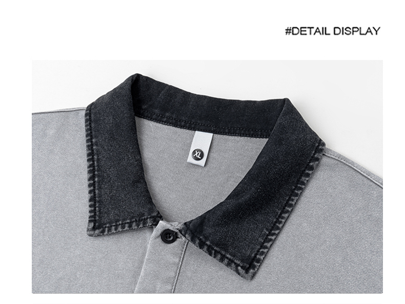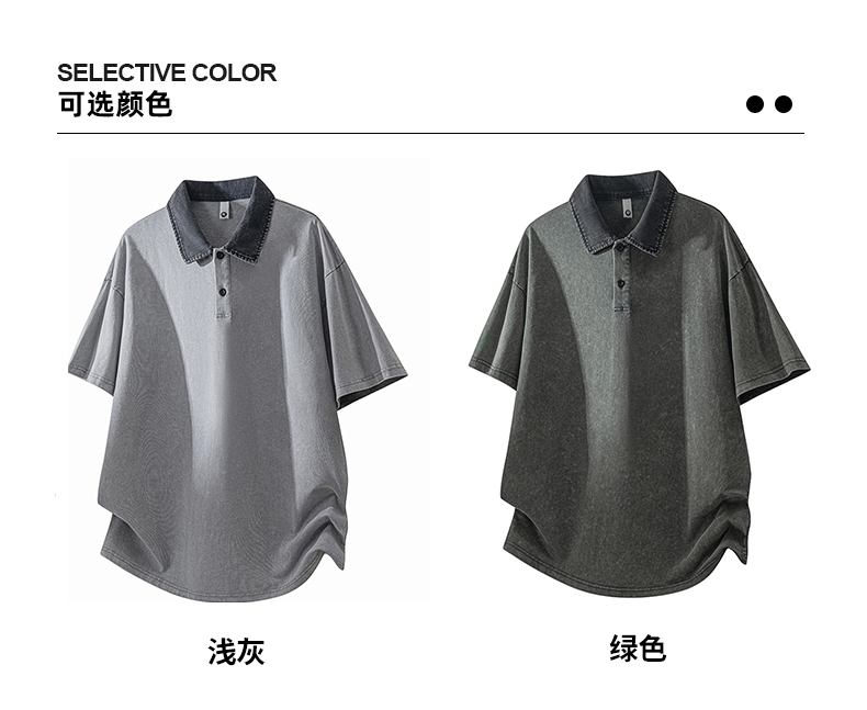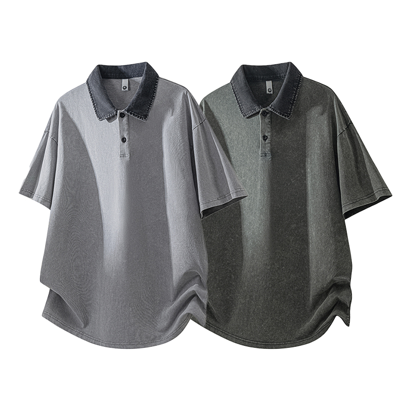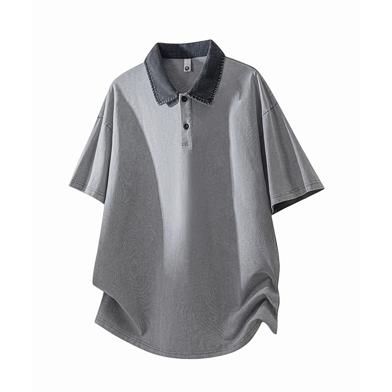 실사 일본식 레트로 워시 물 순면 반팔 POLO 셔츠 남자 여름 루즈핏 단색 다용도 캐주얼 폴로 칼라 티셔츠