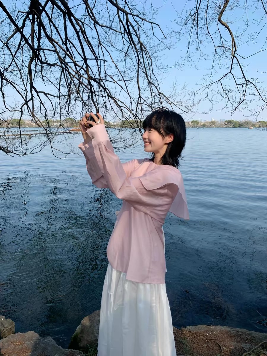creambaby studio 핑크색 불규칙 디자인 센스 여성 셔츠 이른 봄 고유 한 슈퍼 잘 생긴 맨위 얇은