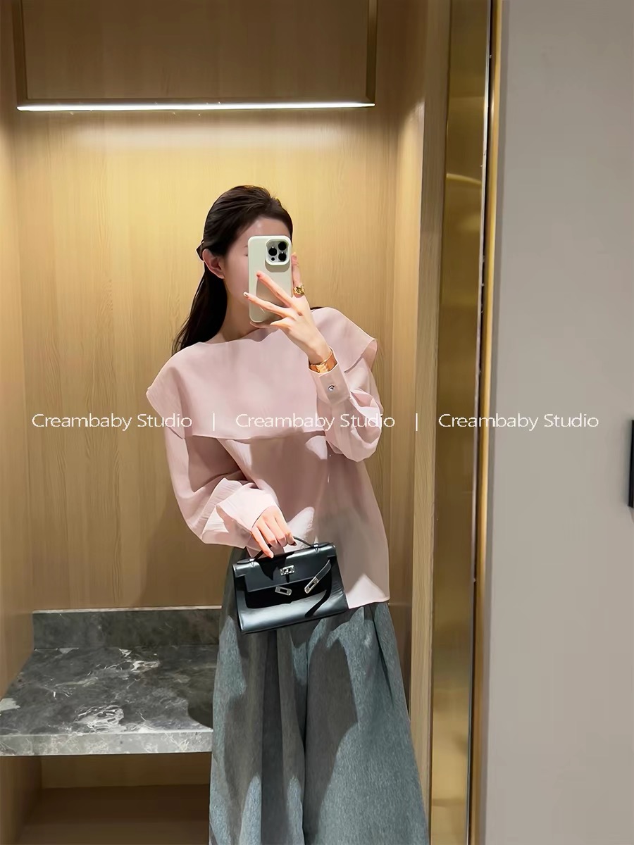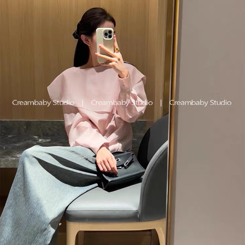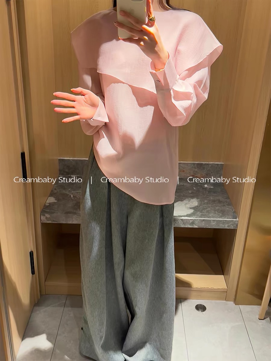 creambaby studio 핑크색 불규칙 디자인 센스 여성 셔츠 이른 봄 고유 한 슈퍼 잘 생긴 맨위 얇은