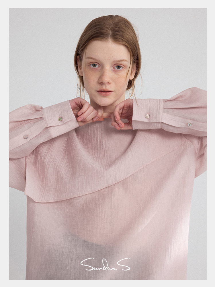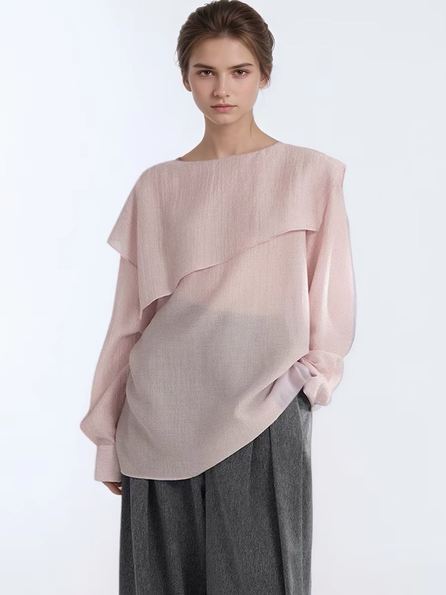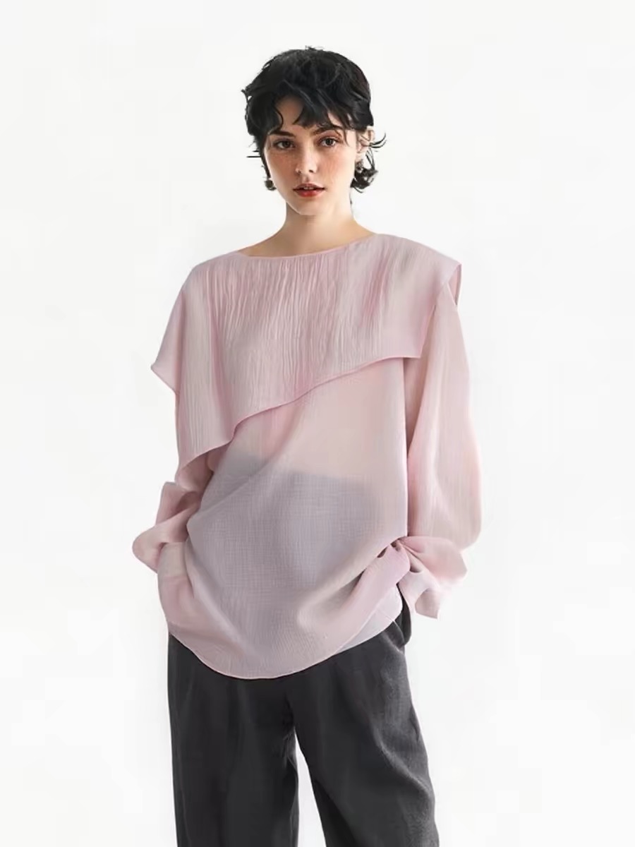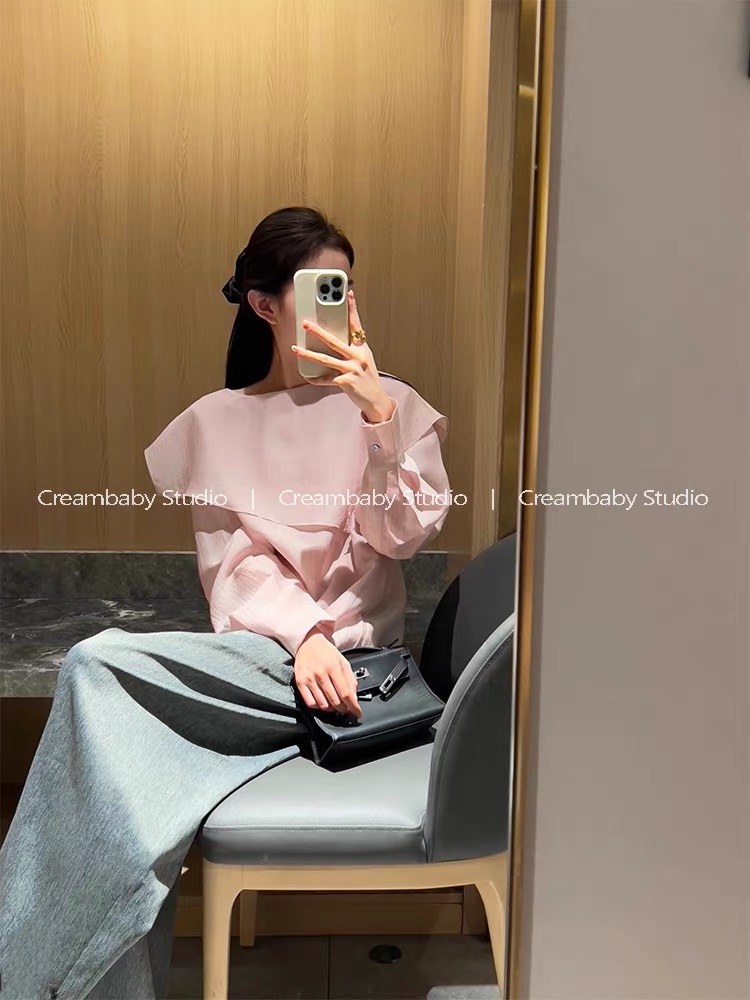 creambaby studio 핑크색 불규칙 디자인 센스 여성 셔츠 이른 봄 고유 한 슈퍼 잘 생긴 맨위 얇은
