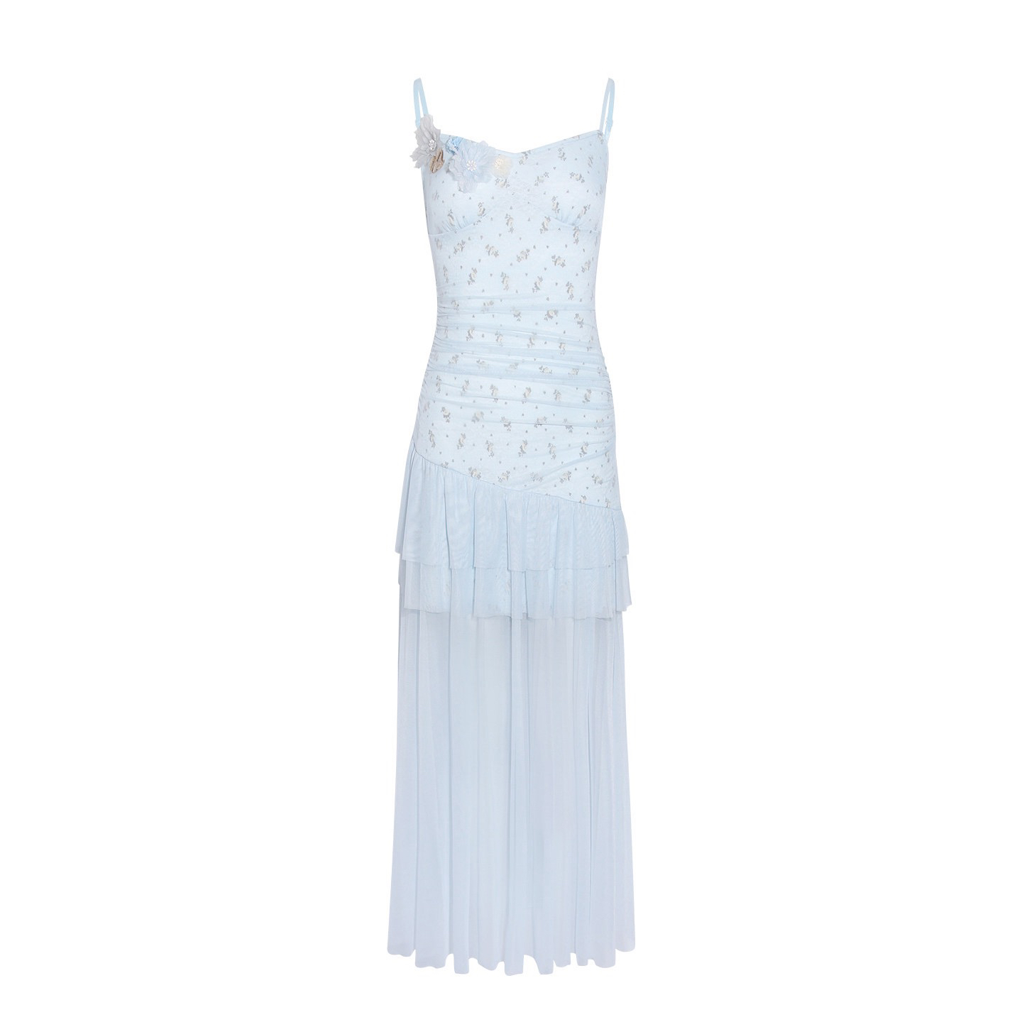 h2an1 studio 丨 맞춤 사쿠라 꽃가루 패치워크 꽃 슬립 드레스 프랑스식 민소매 휴가 롱 스커트