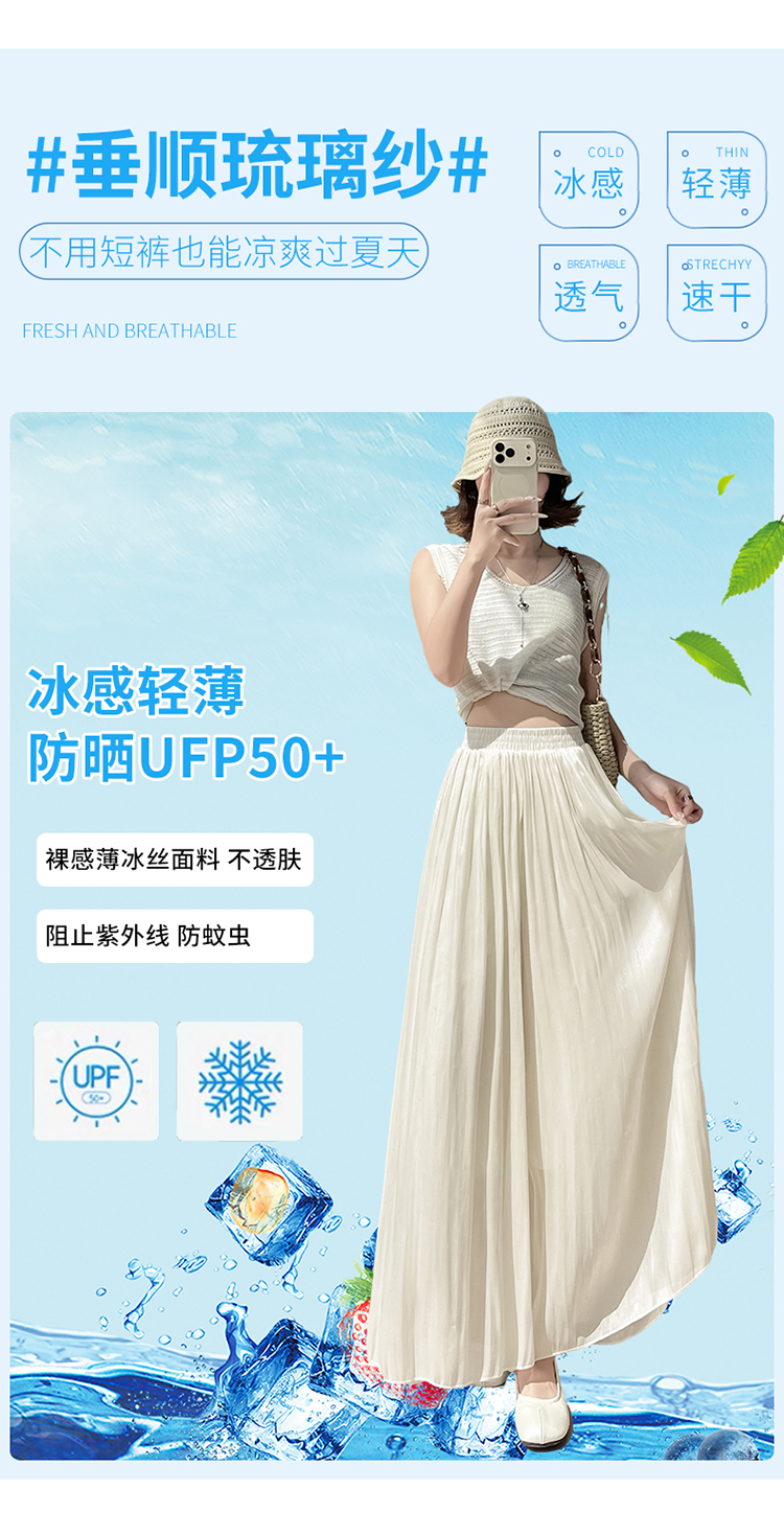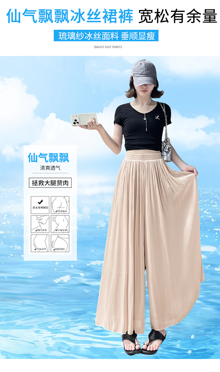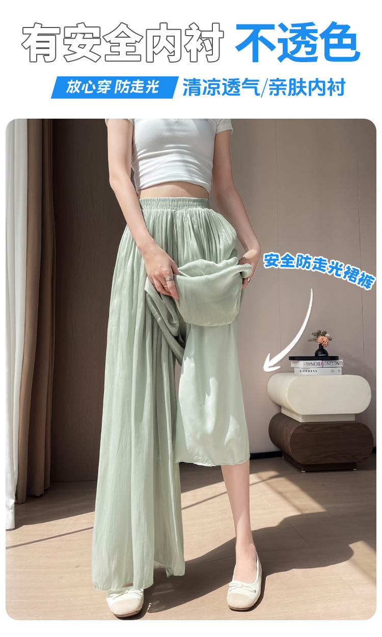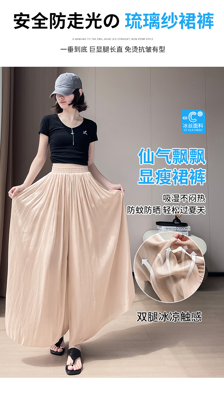 실사 2026 여름 새로운 얇은 스타일 유리 실 얼음 실크 치마바지 여성 하이웨이스트 요정 가스 펄럭 이는 자외선 차단 바지