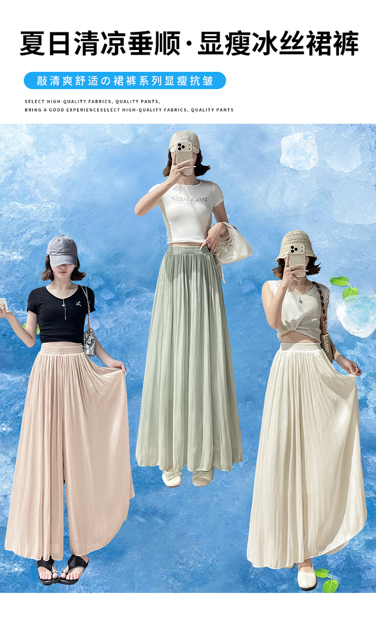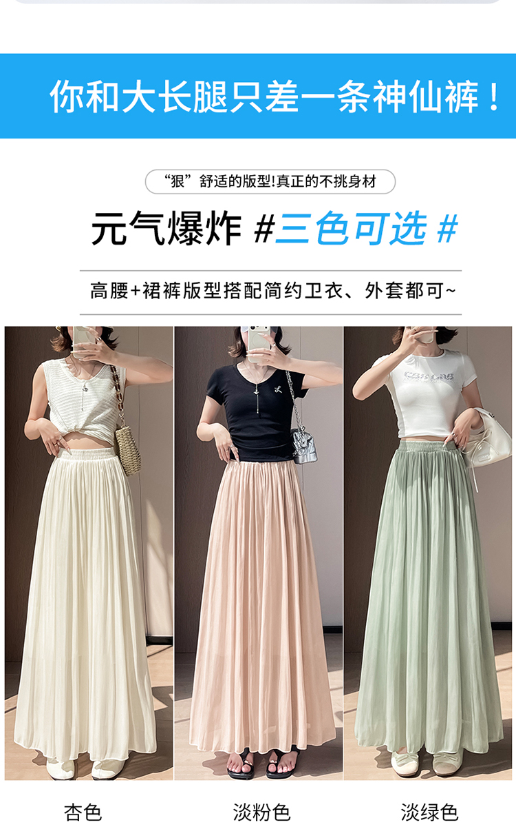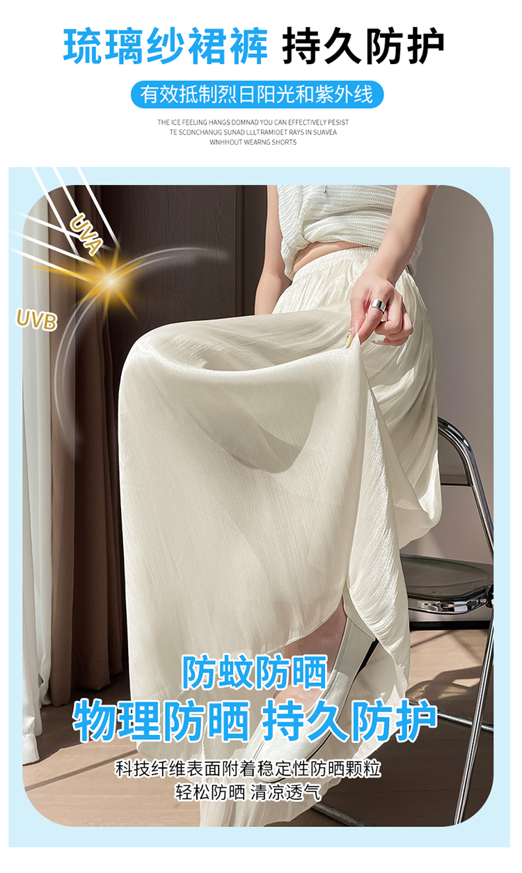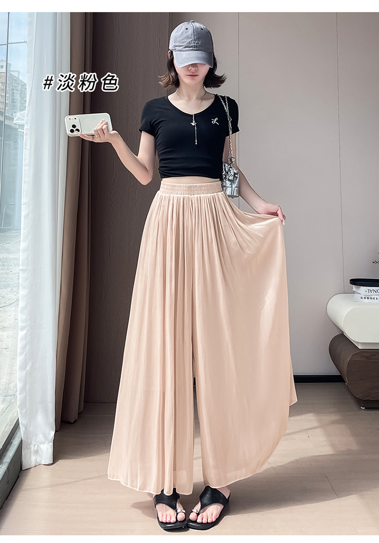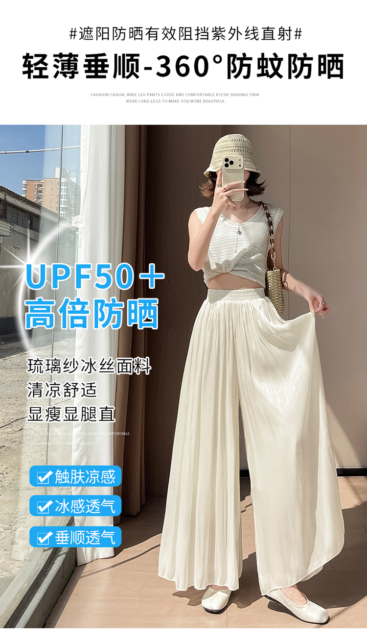실사 2026 여름 새로운 얇은 스타일 유리 실 얼음 실크 치마바지 여성 하이웨이스트 요정 가스 펄럭 이는 자외선 차단 바지