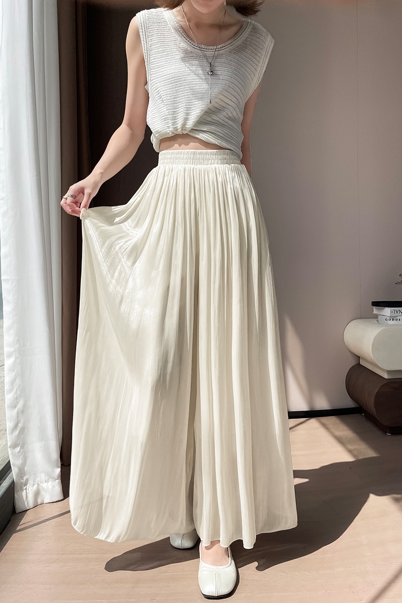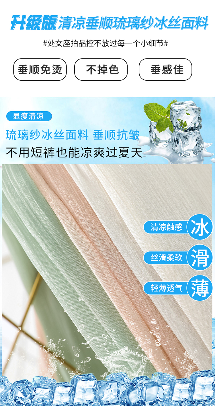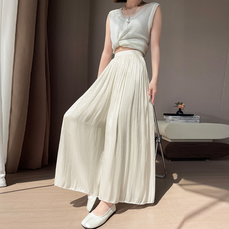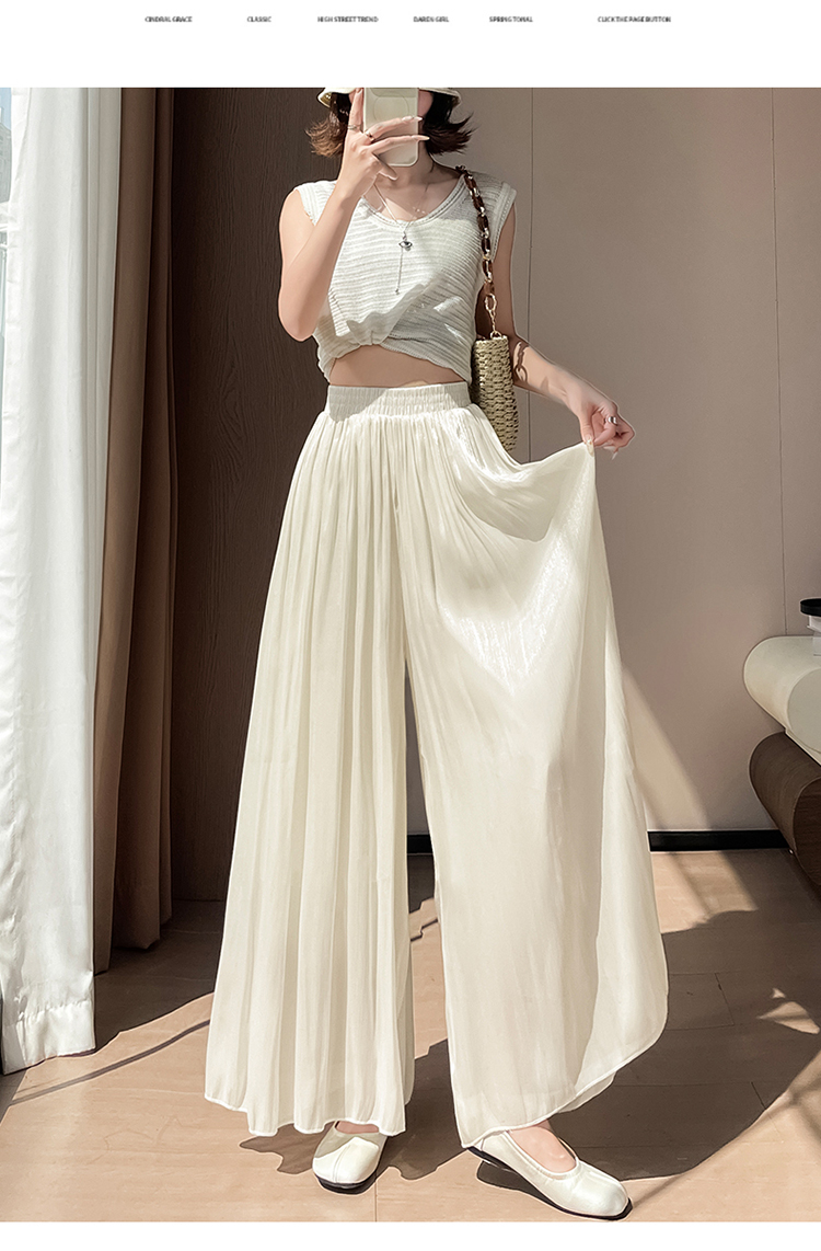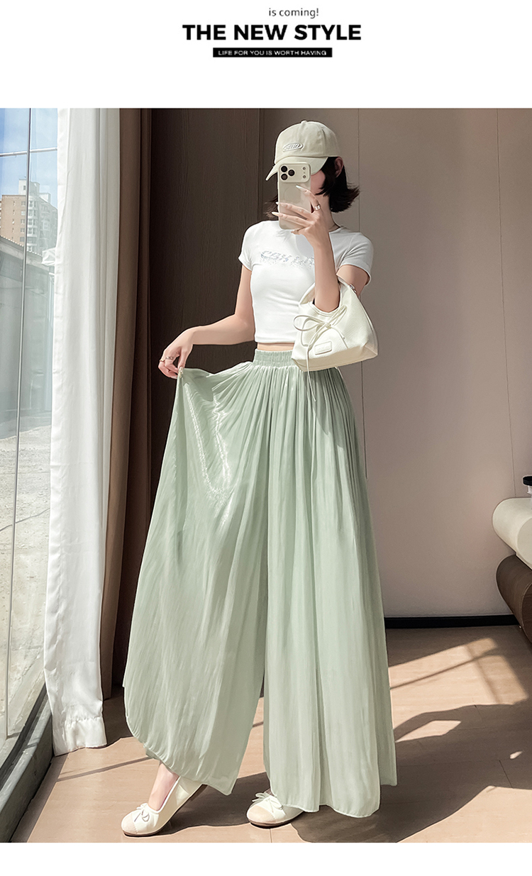 실사 2026 여름 새로운 얇은 스타일 유리 실 얼음 실크 치마바지 여성 하이웨이스트 요정 가스 펄럭 이는 자외선 차단 바지