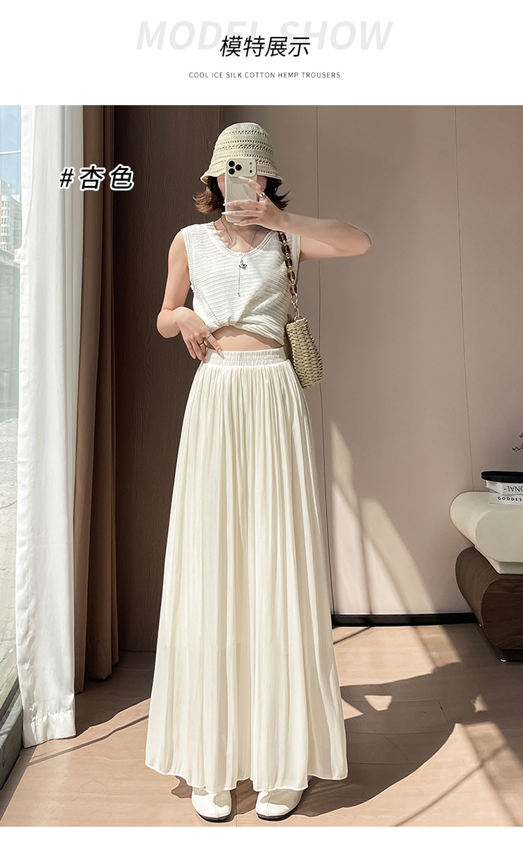 실사 2026 여름 새로운 주간 실크 아마 바지 와이드 레그 팬츠 얇은 스타일 하이웨이스트 얼음 실크 좁은 에디션 바닥 청소 바지 여성
