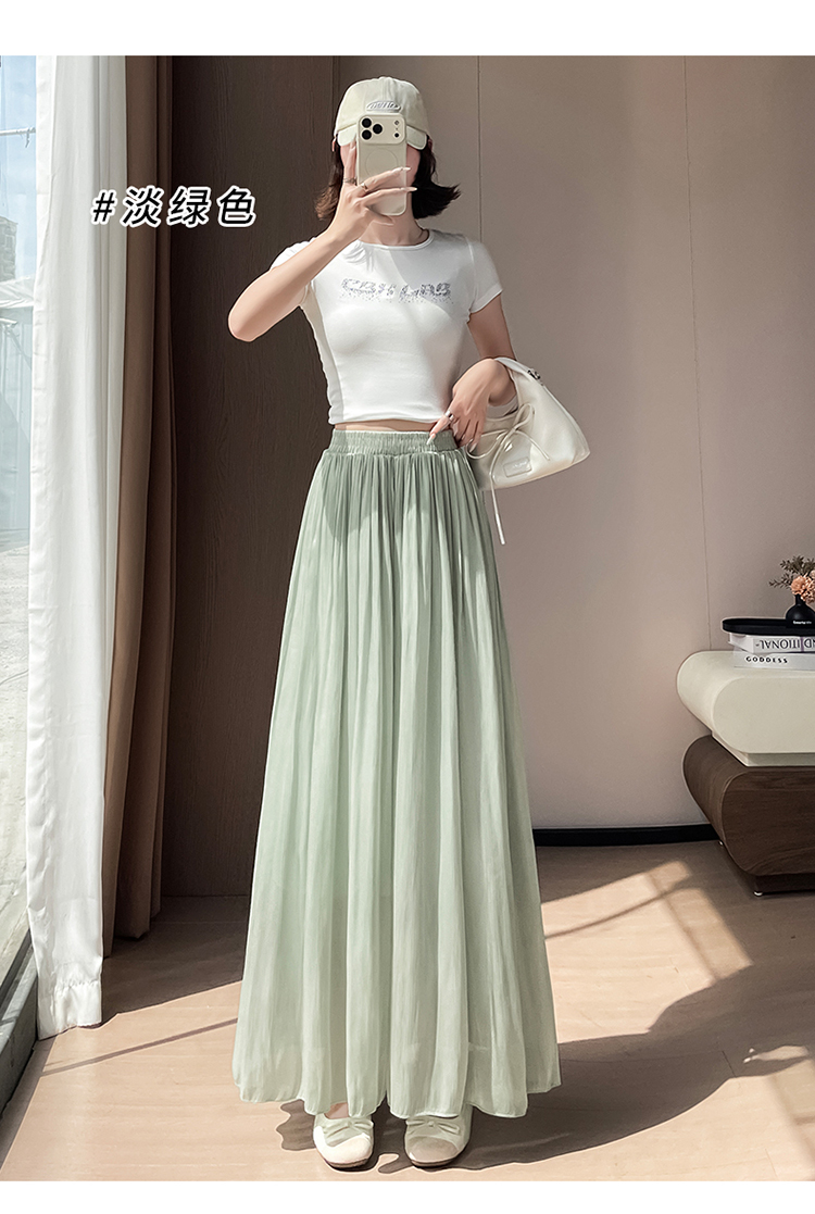 실사 여름 빛 럭셔리 아세트산 무거운 도루 센스 실크 미끄러짐 그라데이션 반신 스커트 새틴 하이웨이스트 슬림해 보이는 반신 한 마디 롱 스커트
