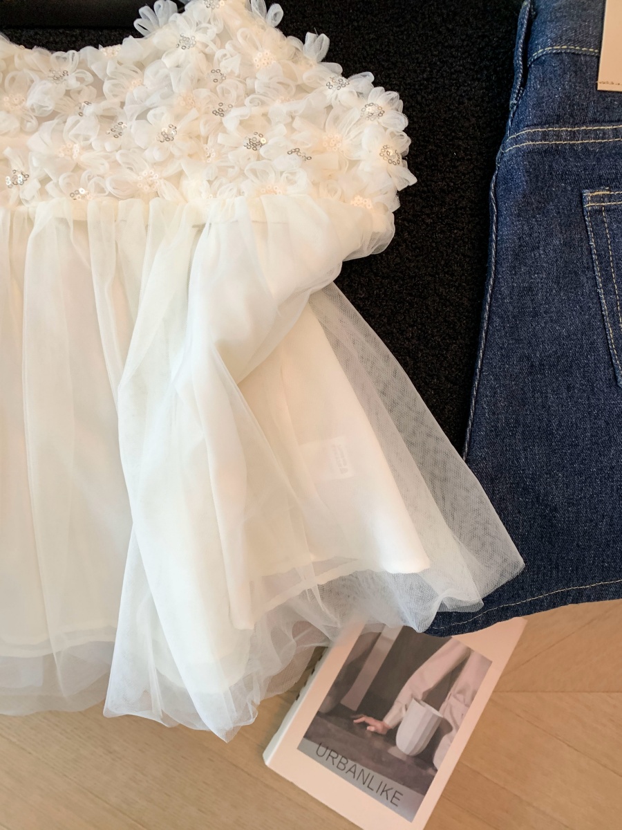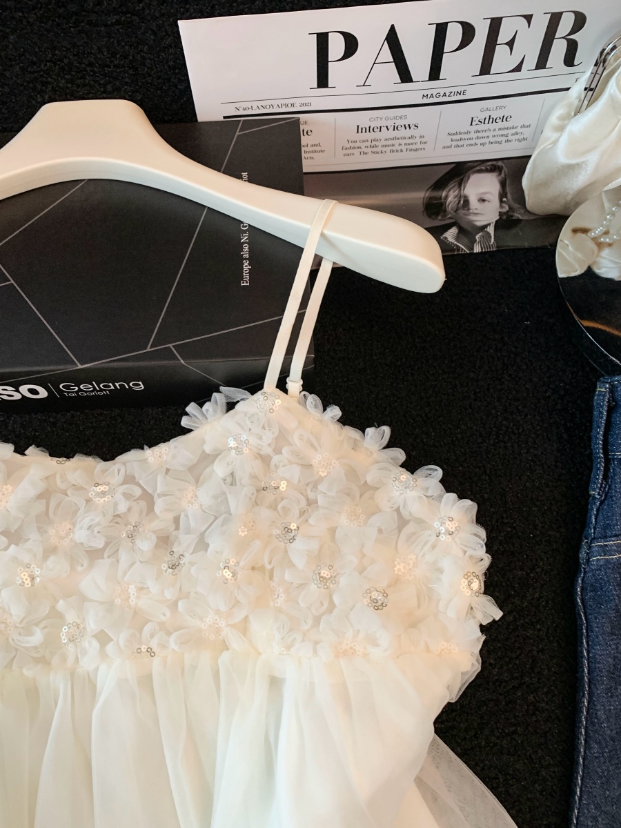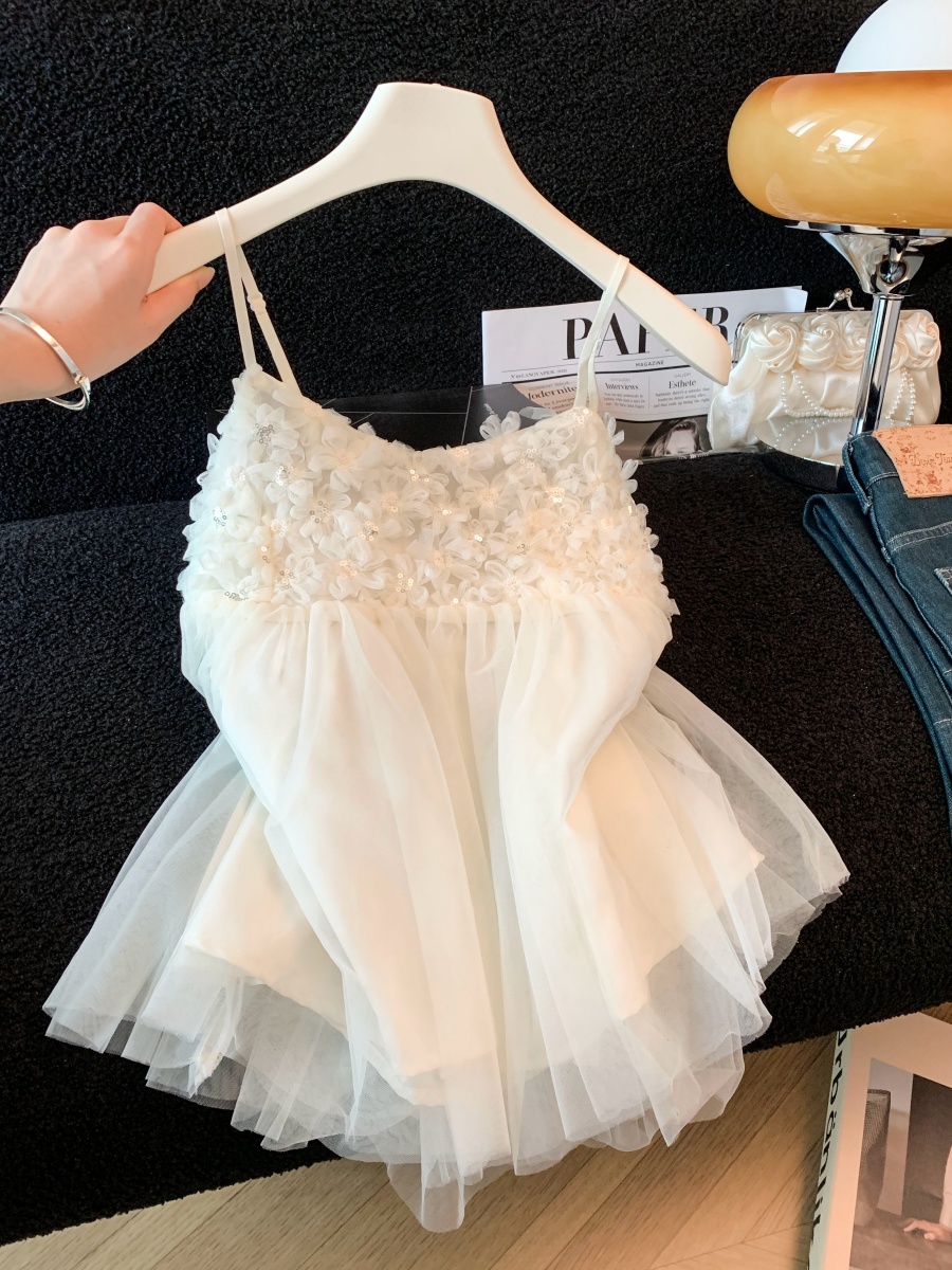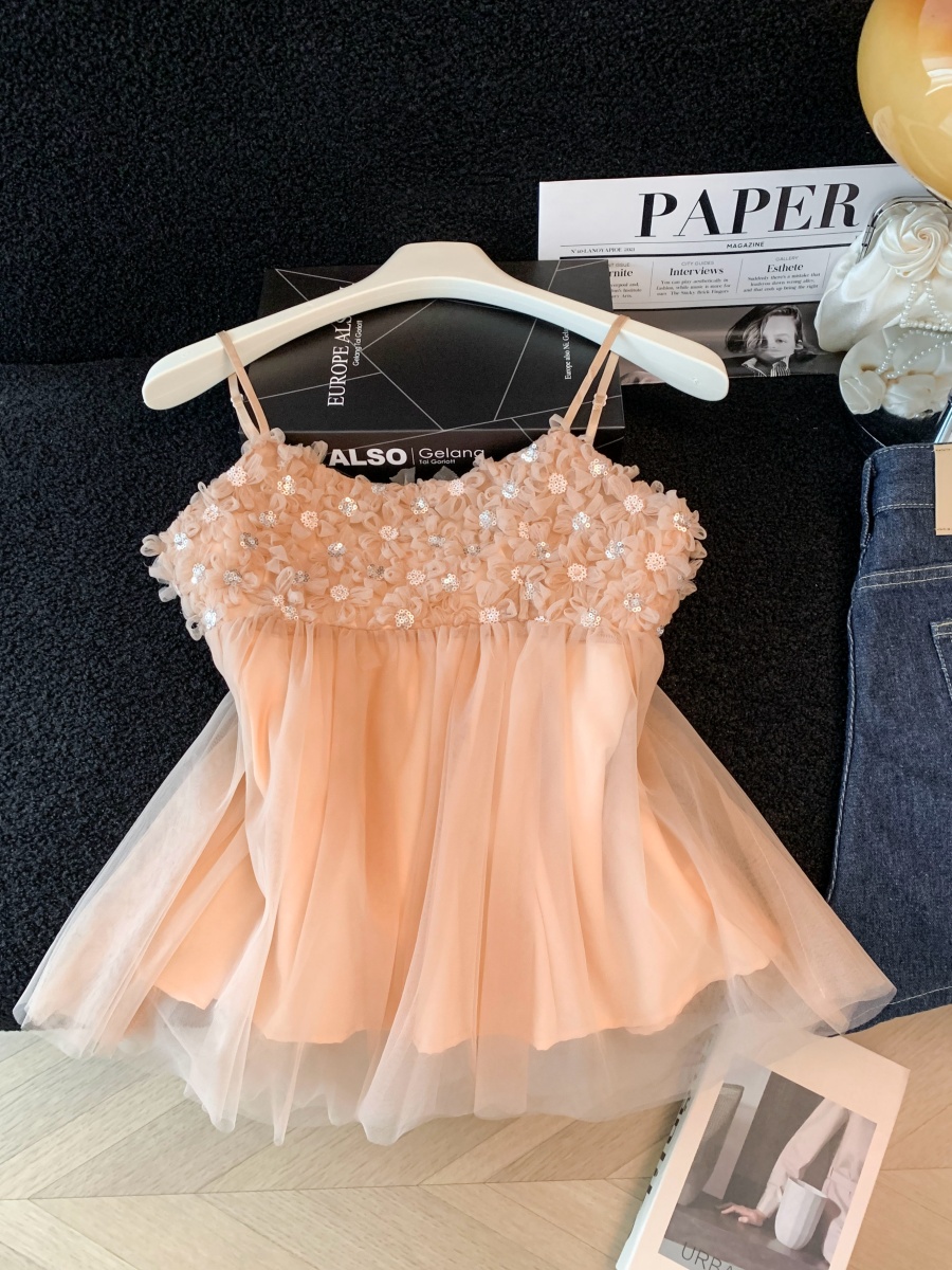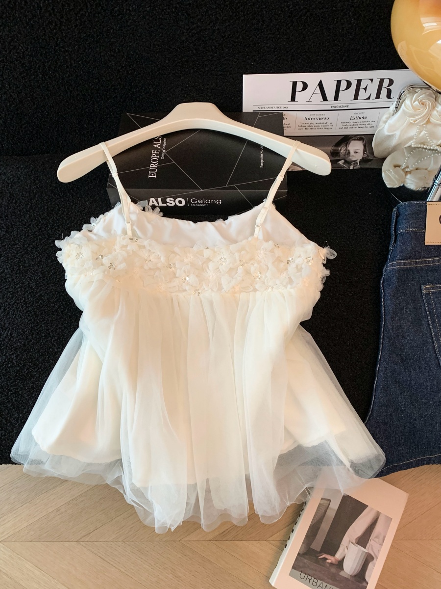 실사 3 차원 꽃 캐미솔 여름 외출용 디자인 센스 순수한 욕망 달콤함 슬림해 보이는 아름다운 작은 셔츠 맨위
