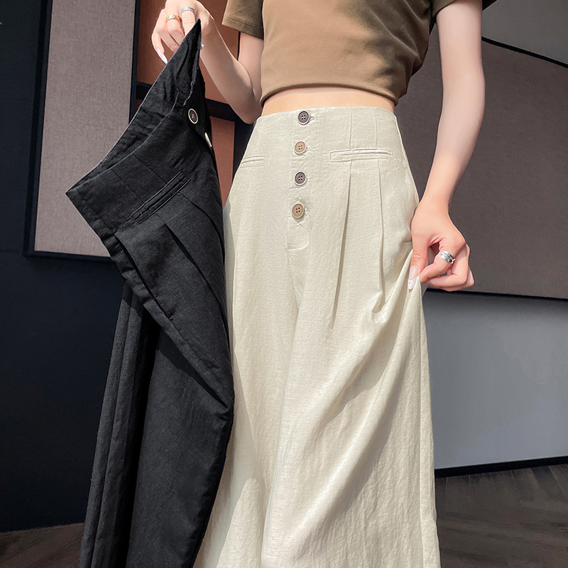 실사 2026 여름 새로운 면 린넨 와이드 레그 팬츠 얼음 실크 하이웨이스트 얇은 스타일 레이스 야마모토 바지 여성