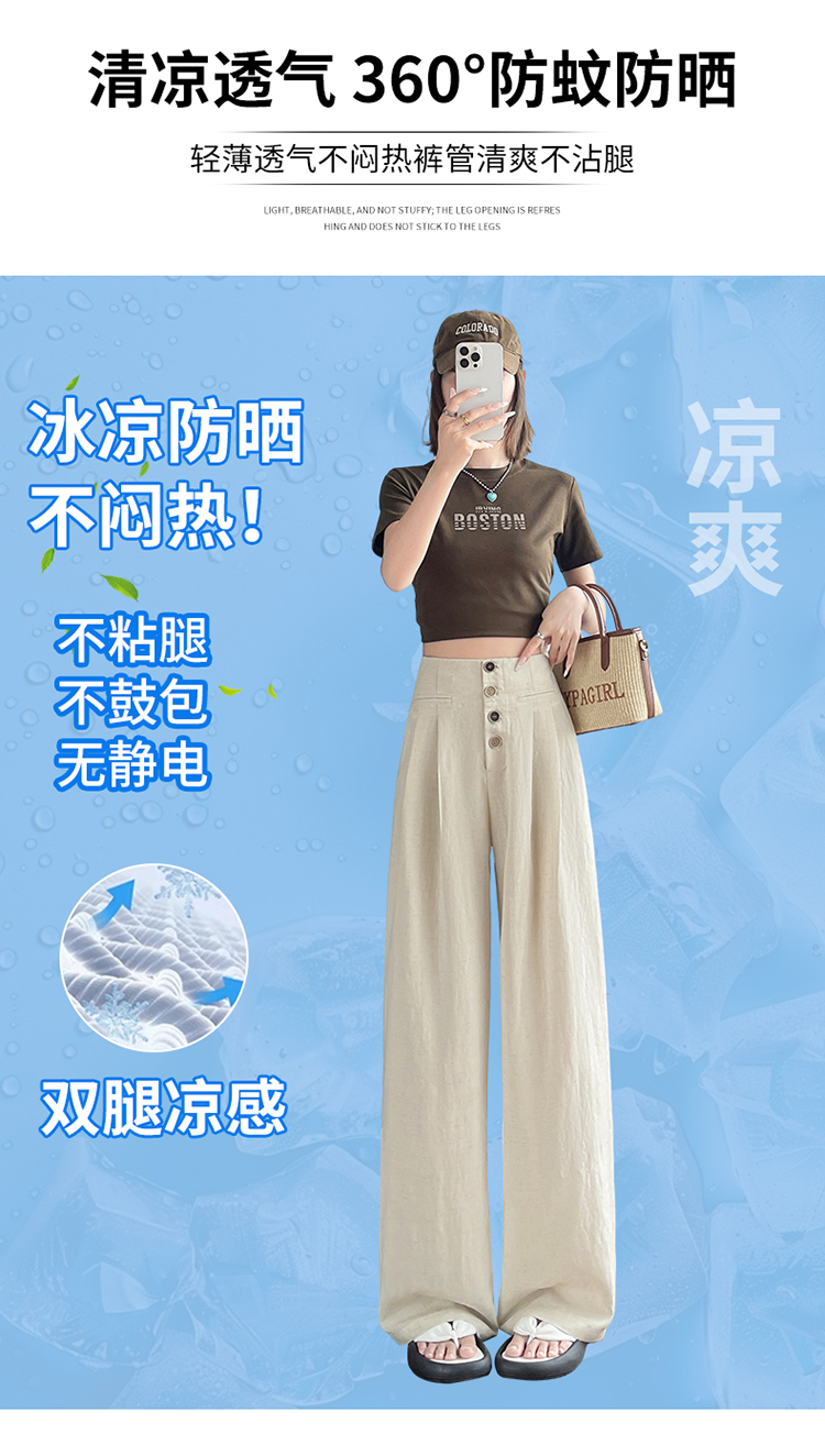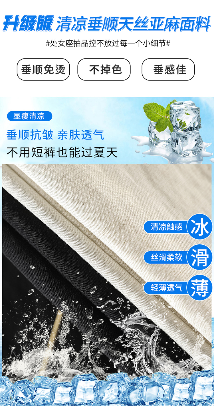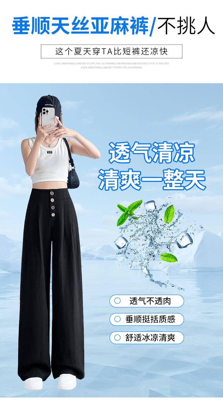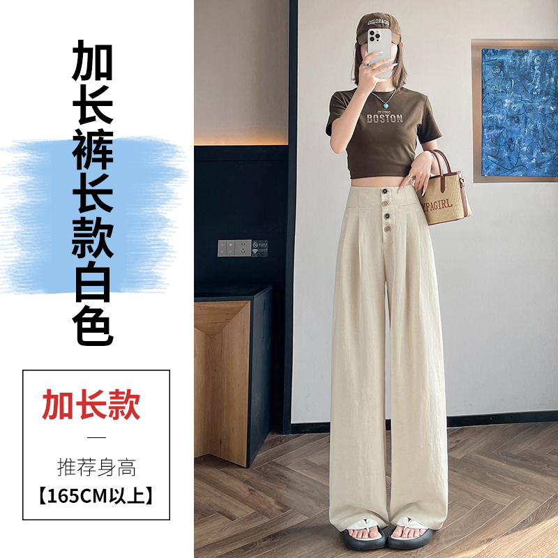 실사 2026 여름 새로운 주간 실크 아마 바지 와이드 레그 팬츠 얇은 스타일 하이웨이스트 얼음 실크 좁은 에디션 바닥 청소 바지 여성