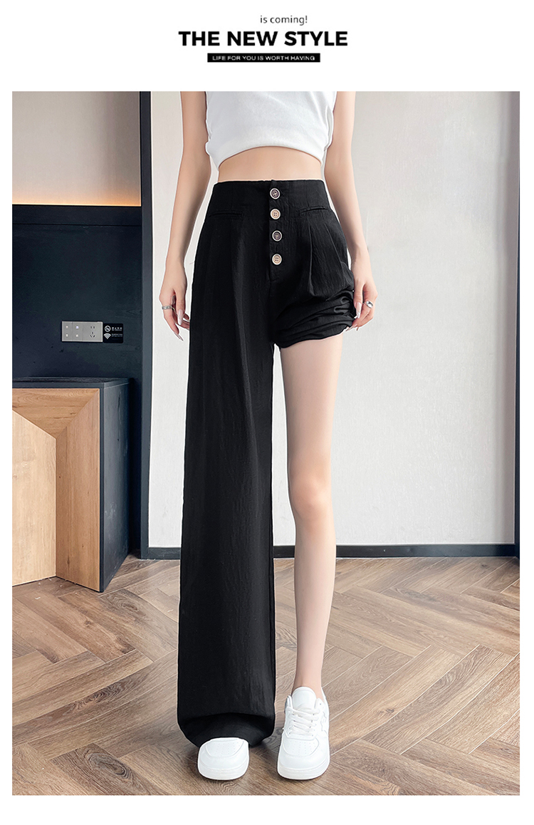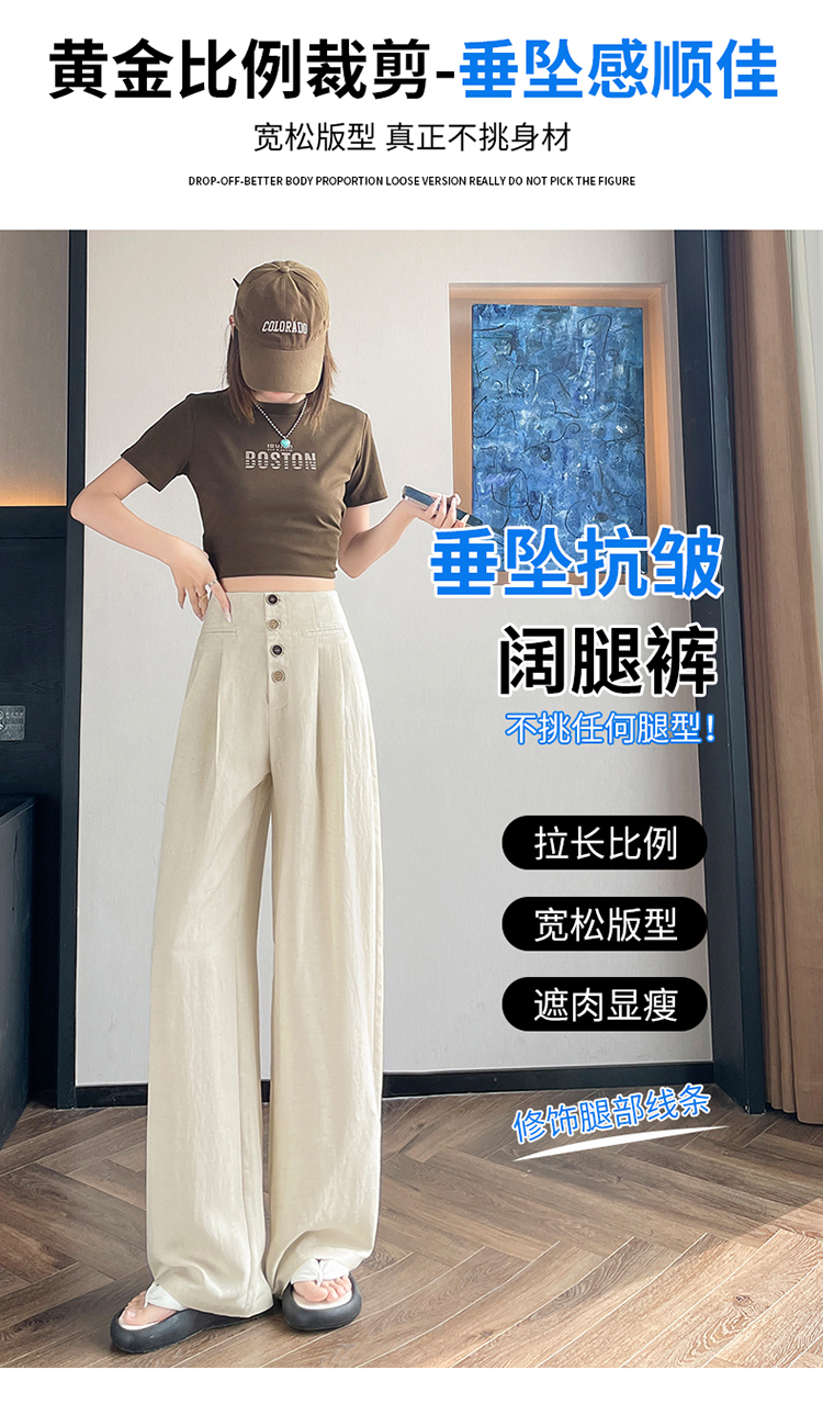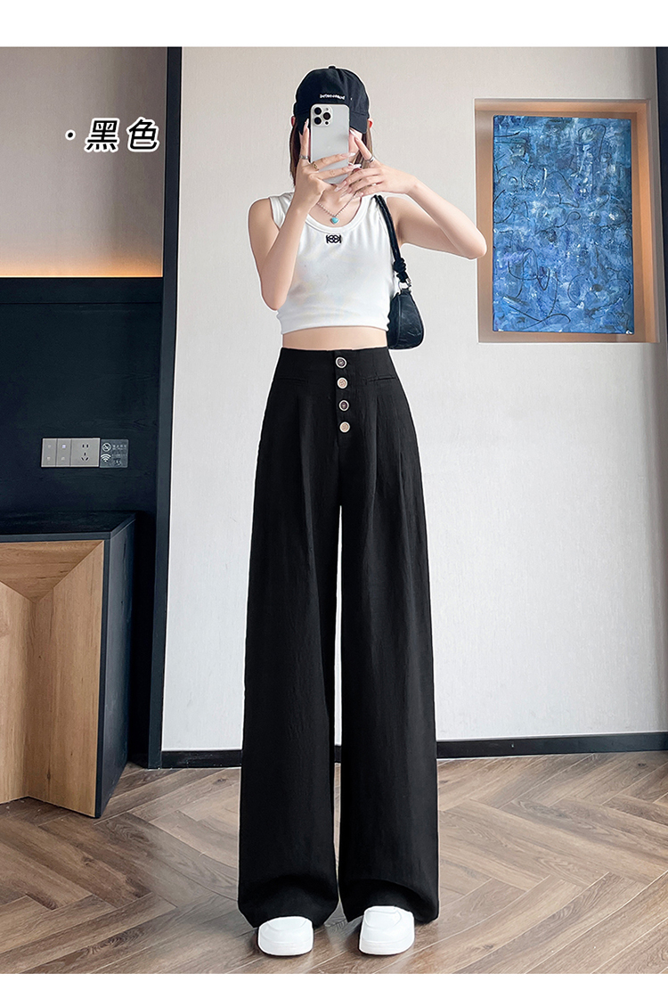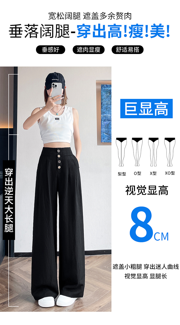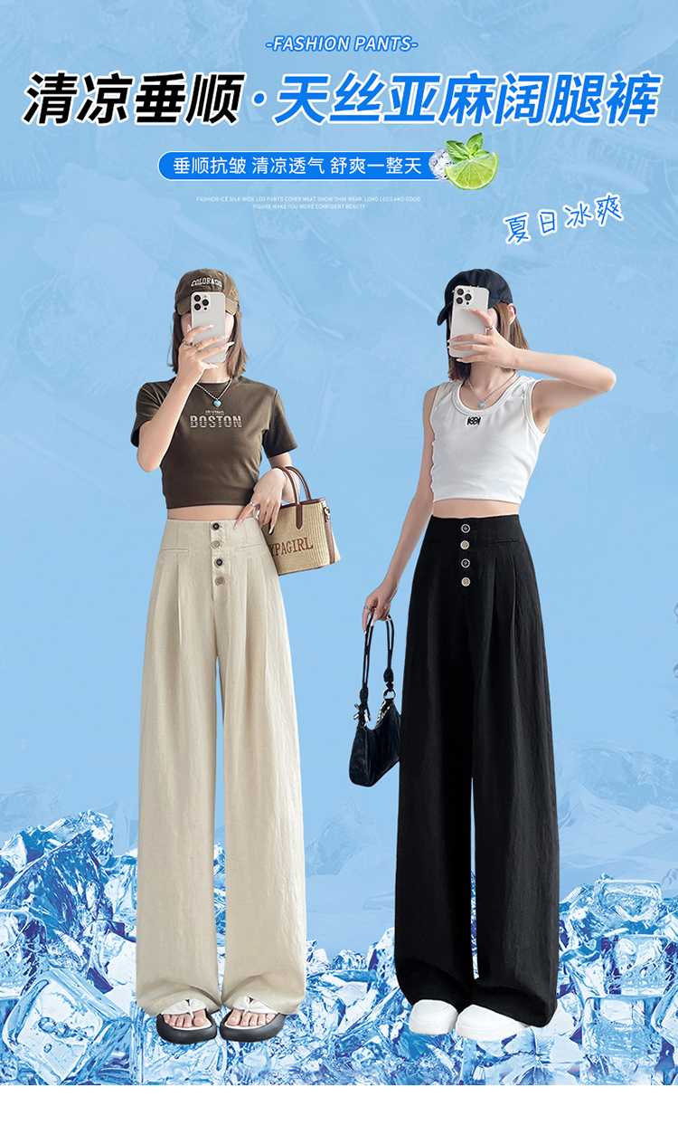 실사 2026 여름 새로운 주간 실크 아마 바지 와이드 레그 팬츠 얇은 스타일 하이웨이스트 얼음 실크 좁은 에디션 바닥 청소 바지 여성