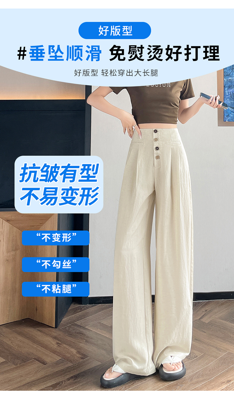 실사 2026 여름 새로운 엠보싱 아세트산 새틴 와이드 레그 팬츠 자외선 차단 얼음 실크 바지 스트레이트 캐주얼 바닥 청소 바지 여성