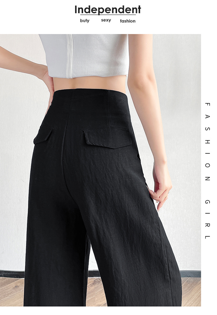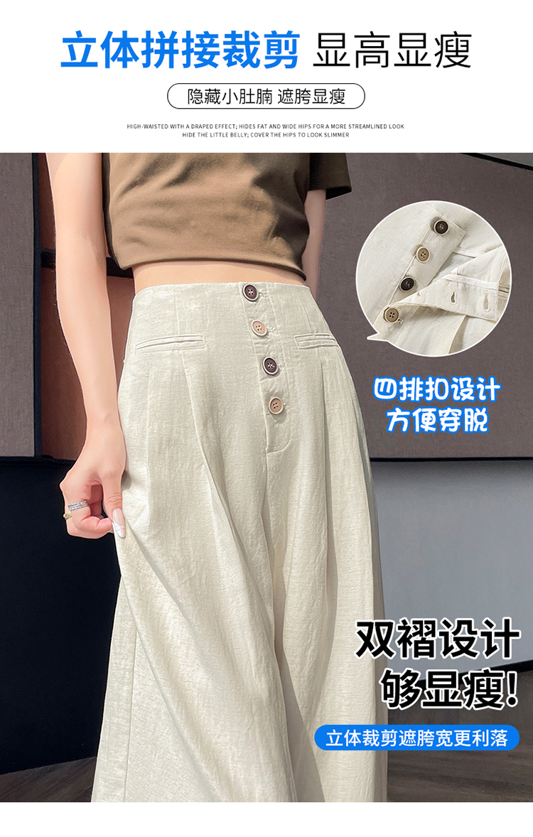실사 2026 여름 새로운 주간 실크 아마 모통이 칼 바지 하이웨이스트 캐주얼 바지 얼음 실크 넓은 다리 바닥 청소 바지 여성