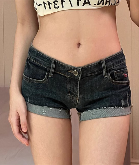 정가 검정색 로우 웨이스트 데님 초단바지 여성 여름 타이트 스커트 y2k 빛 이문화 핫 바지 아메리칸 핫걸 신축성 바지