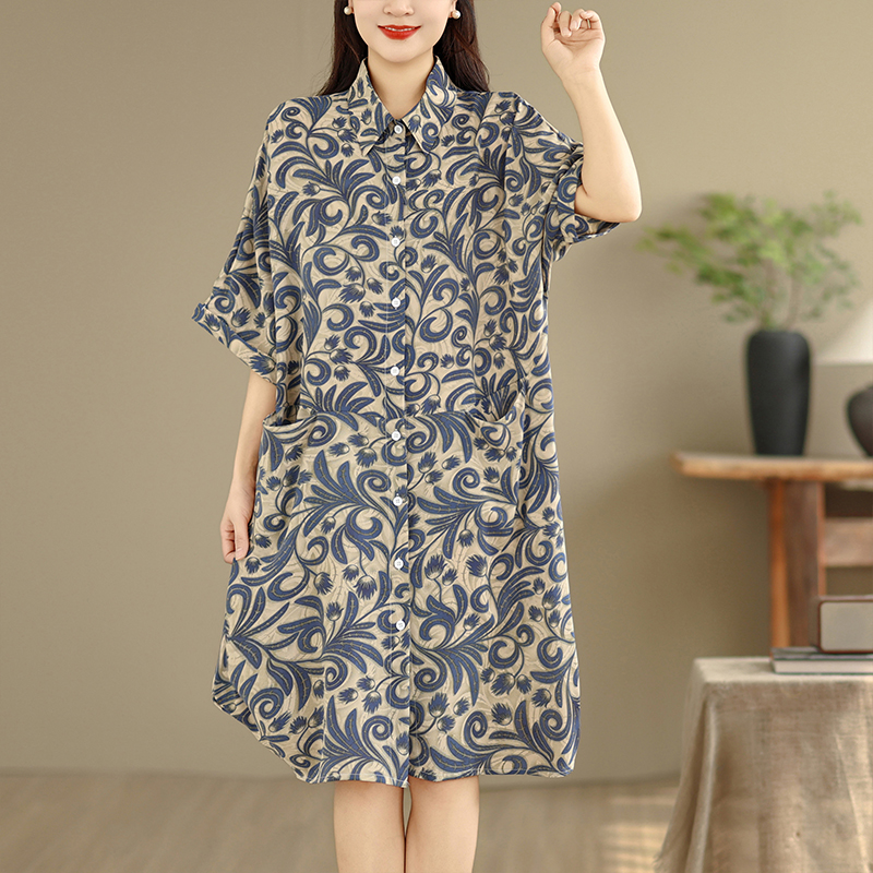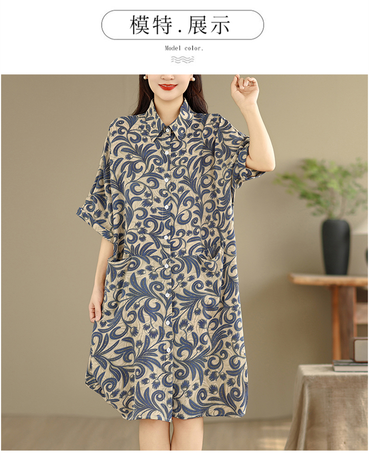 빅 사이즈 여성 의류 표지 고기 셔츠 드레스 2026 여름 새로운 패션 엄마 중간 길이 캐주얼 루즈핏 치마