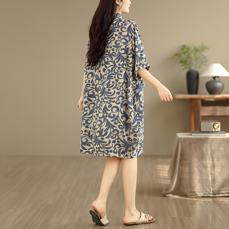 여름 요금 품격 슬림해 보이는 면 린넨 중국풍 개선 치파오 2026 여름 새로운 루즈핏 중간 길이 드레스