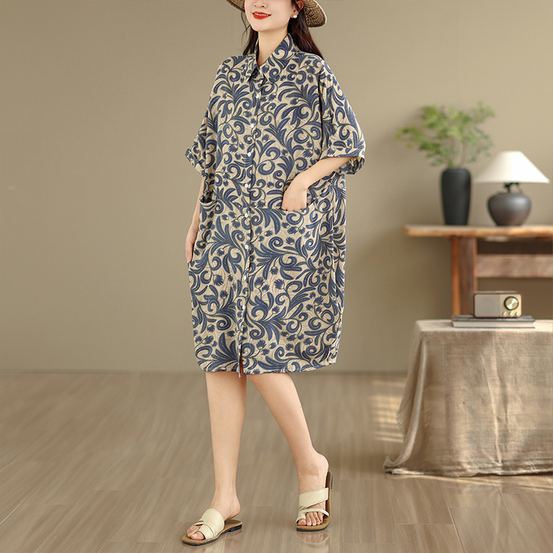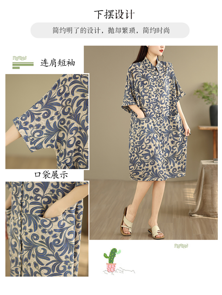 떠 다니는 대나무 그림자 하프 부드럽게 청 유 노래 내가 부유 한 대나무 차가운 주간 도리 편안함 캐주얼 꽃무늬 여성 드레스 여름