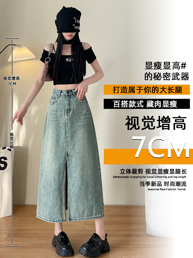 실사 작은 키 자수 넓은 다리 청바지 여성 여름 2026 새로운 레트로 하이웨이스트 슬림해 보이는 스트레이트 8 점 바지