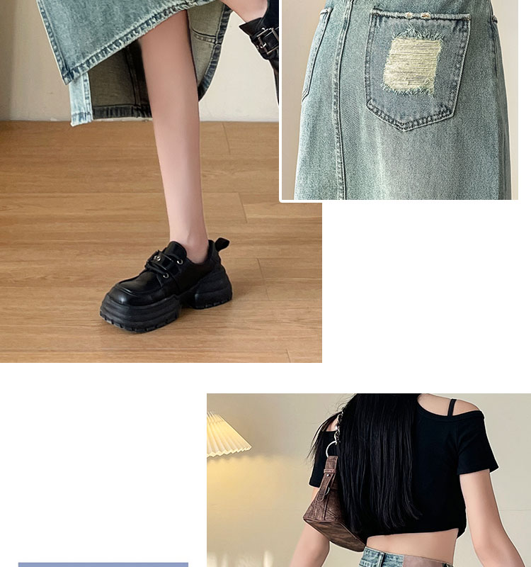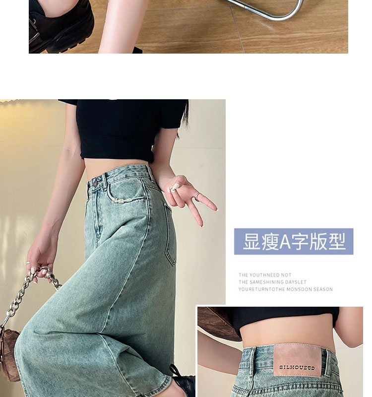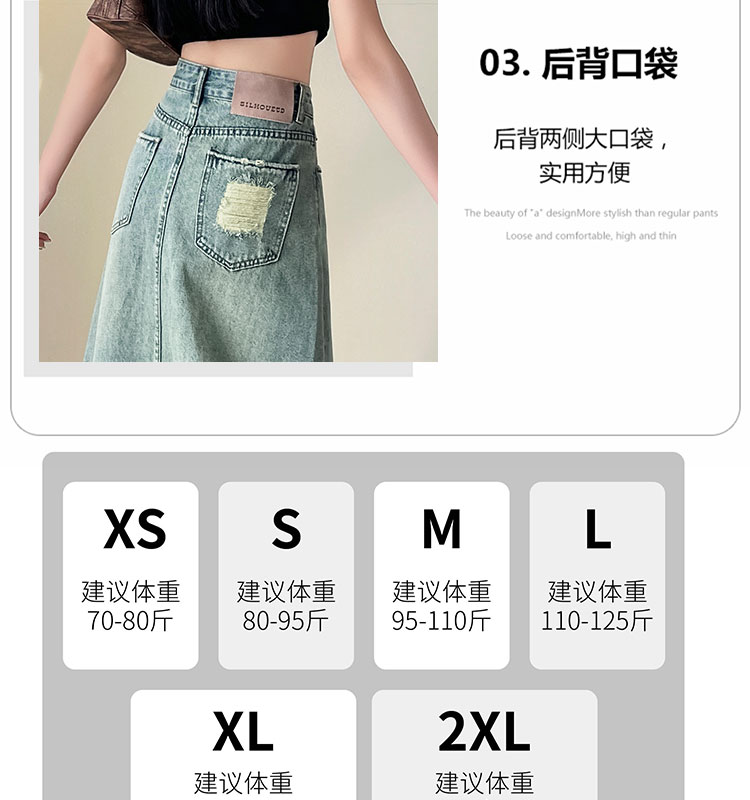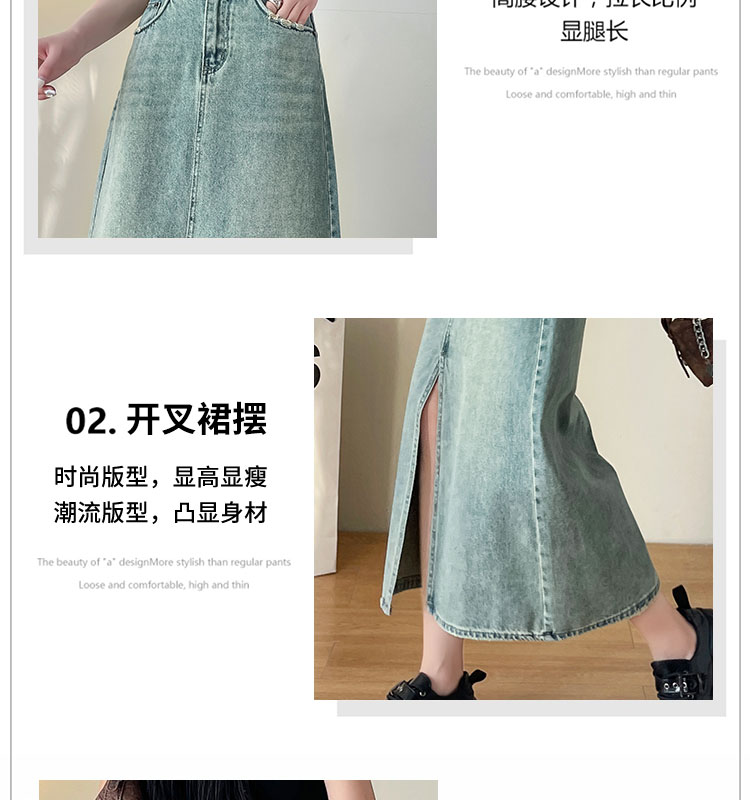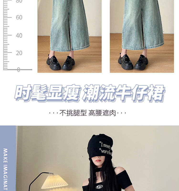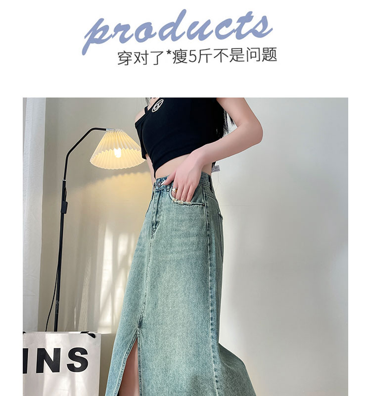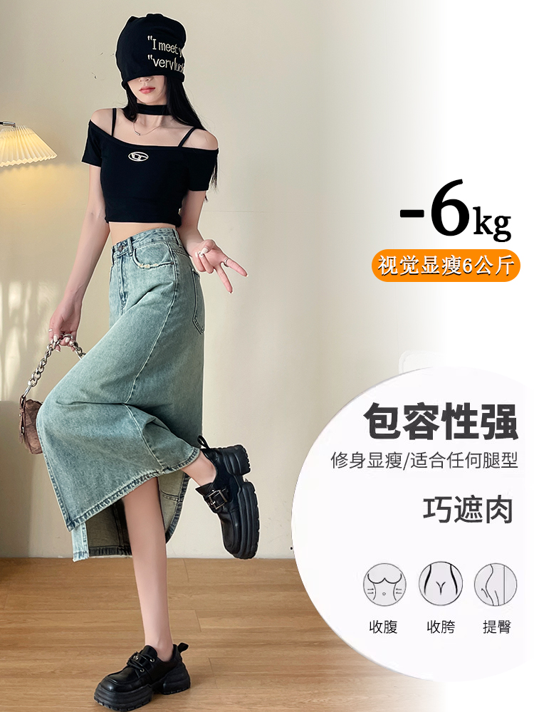 실사 하이웨이스트 데님 반신 스커트 여성 여름 폭발 빙하 블루 디자인 센스 트임 한 마디 타이트 스커트 중간 길이 치마
