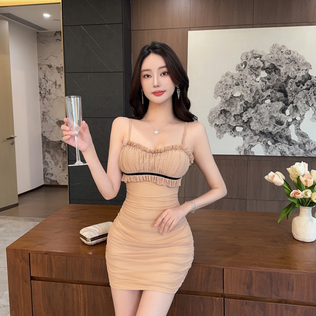 실사 순수한 욕망 섹시함 프릴 쇼트 스타일 타이트 스커트 배색 드레스 복장