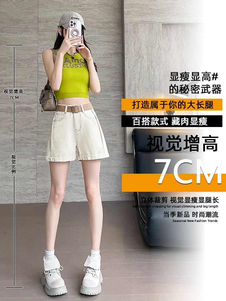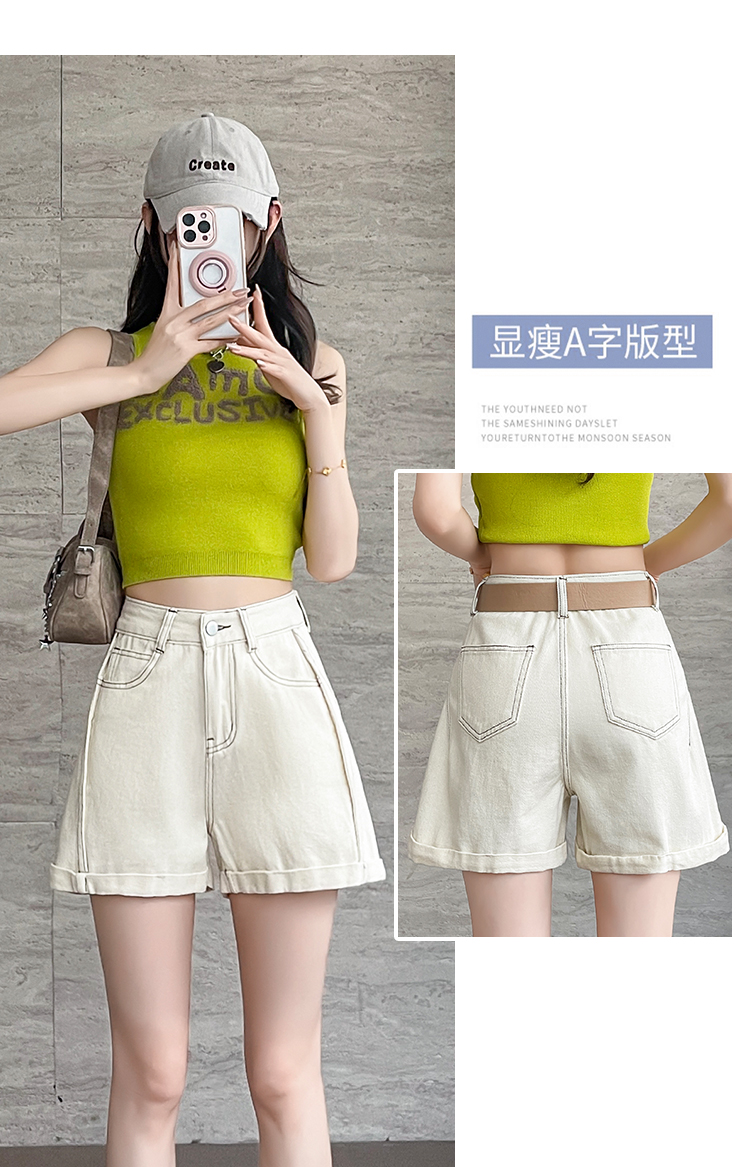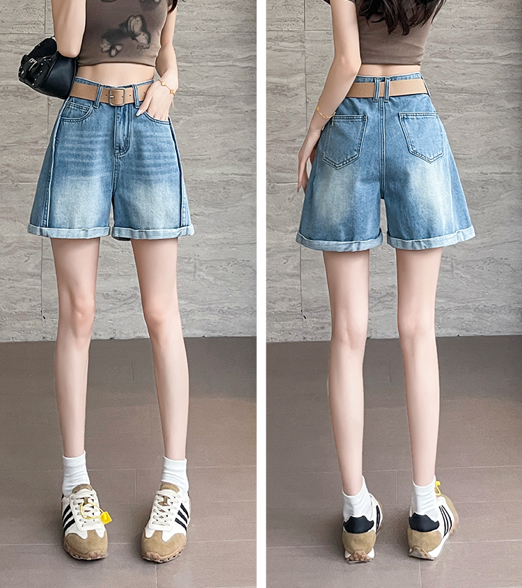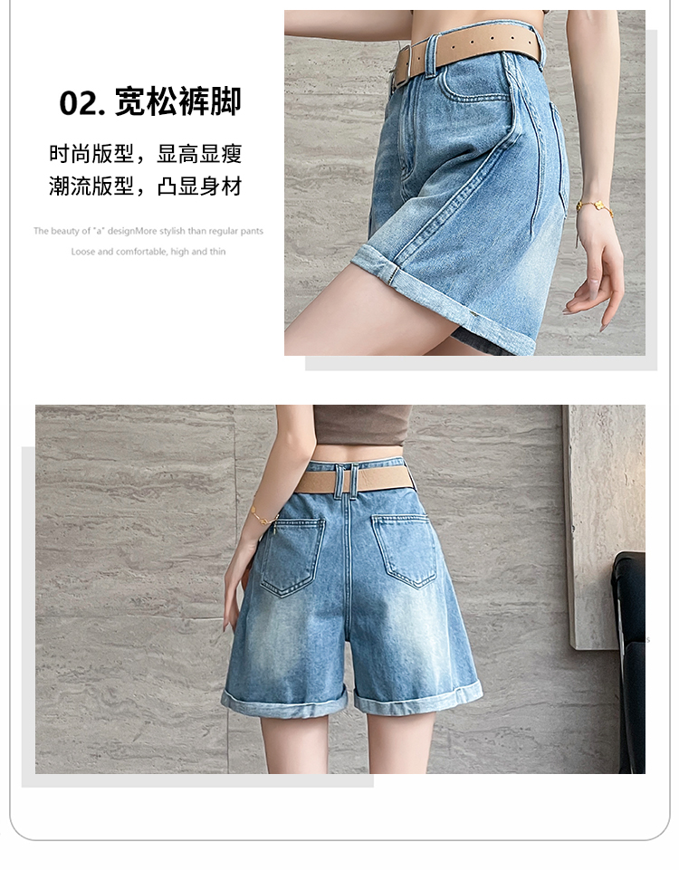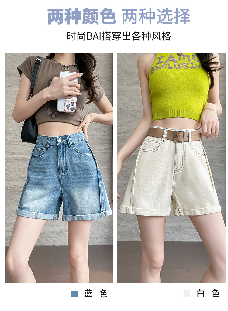 실사 아메리칸 레트로 데님 반바지 여성 여름 얇은 스타일 외출용 하이웨이스트 슬림해 보이는 한 마디 초단 핫걸 뜨거운 바지