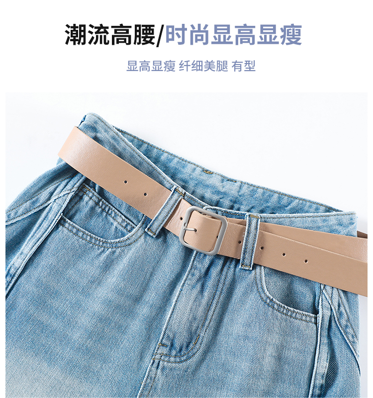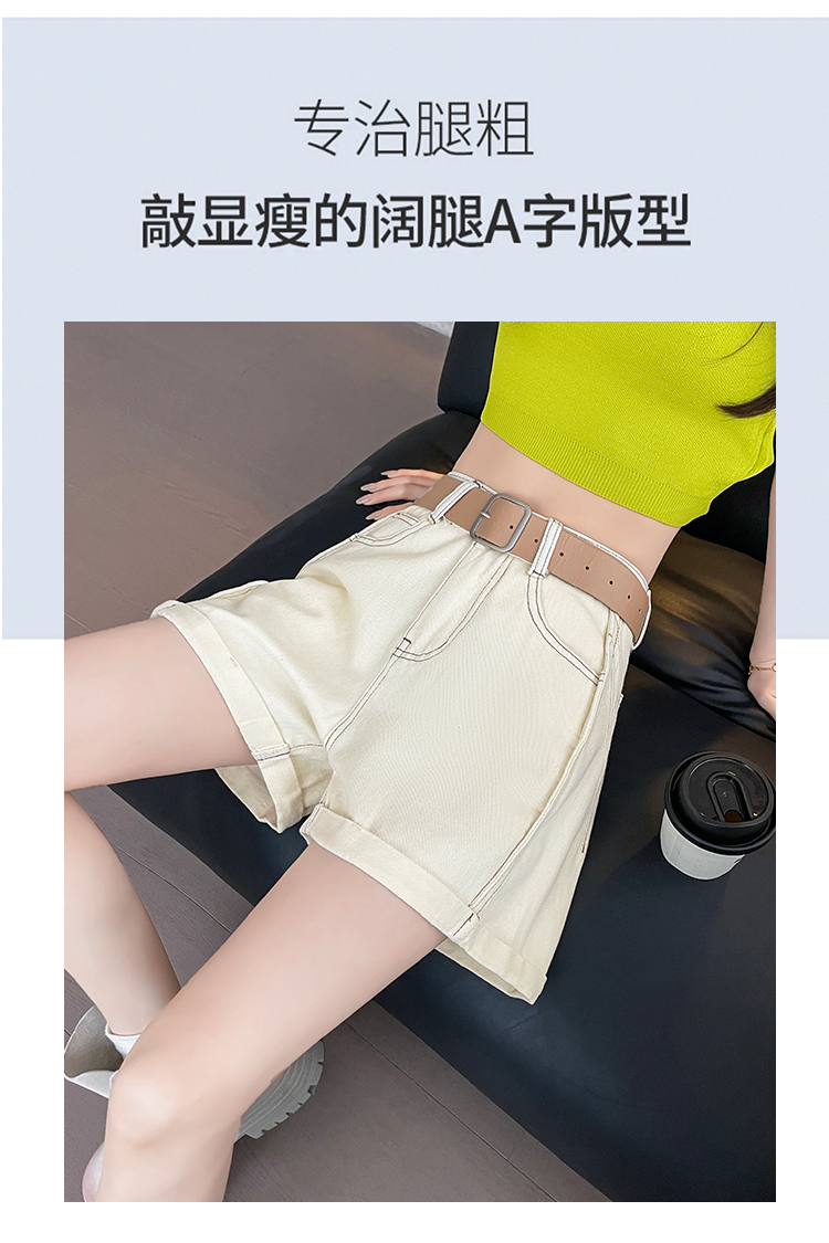 실사 살구 색상 핫걸 넓은 다리 데님 반바지 여성 여름 얇은 스타일 하이웨이스트 슬림해 보이는 루즈핏 작은 키 스트레이트 핫 바지