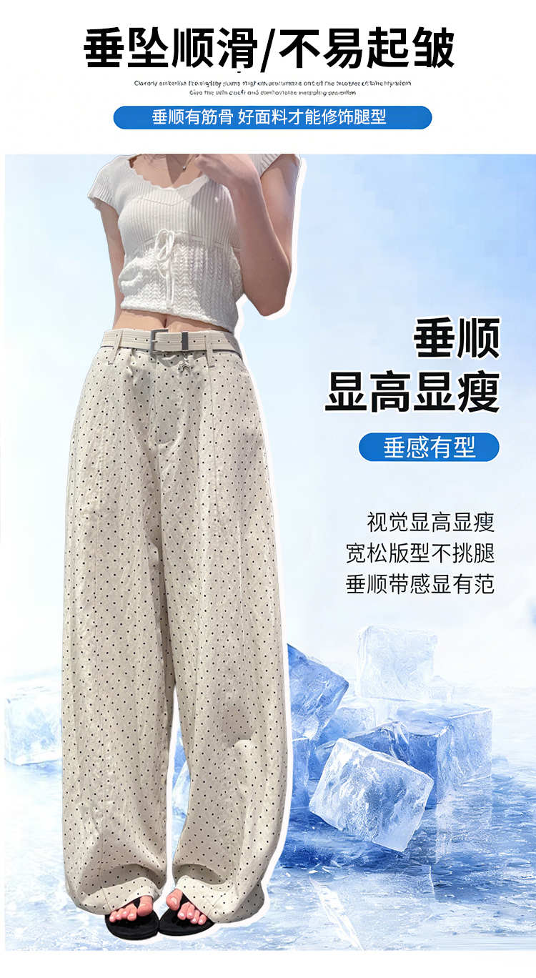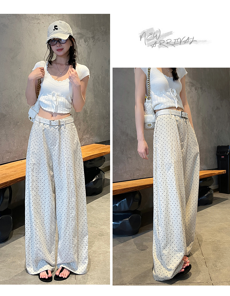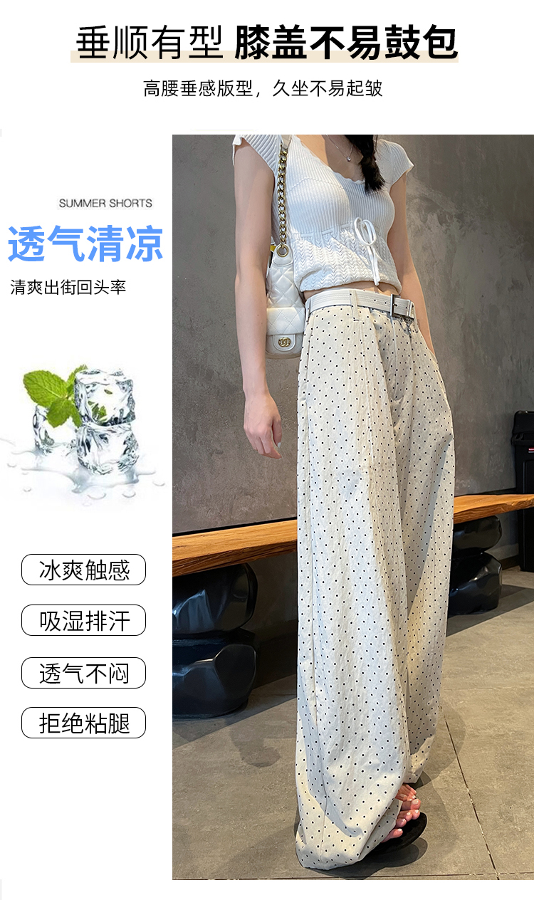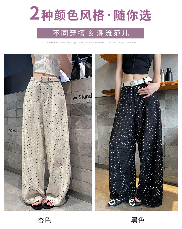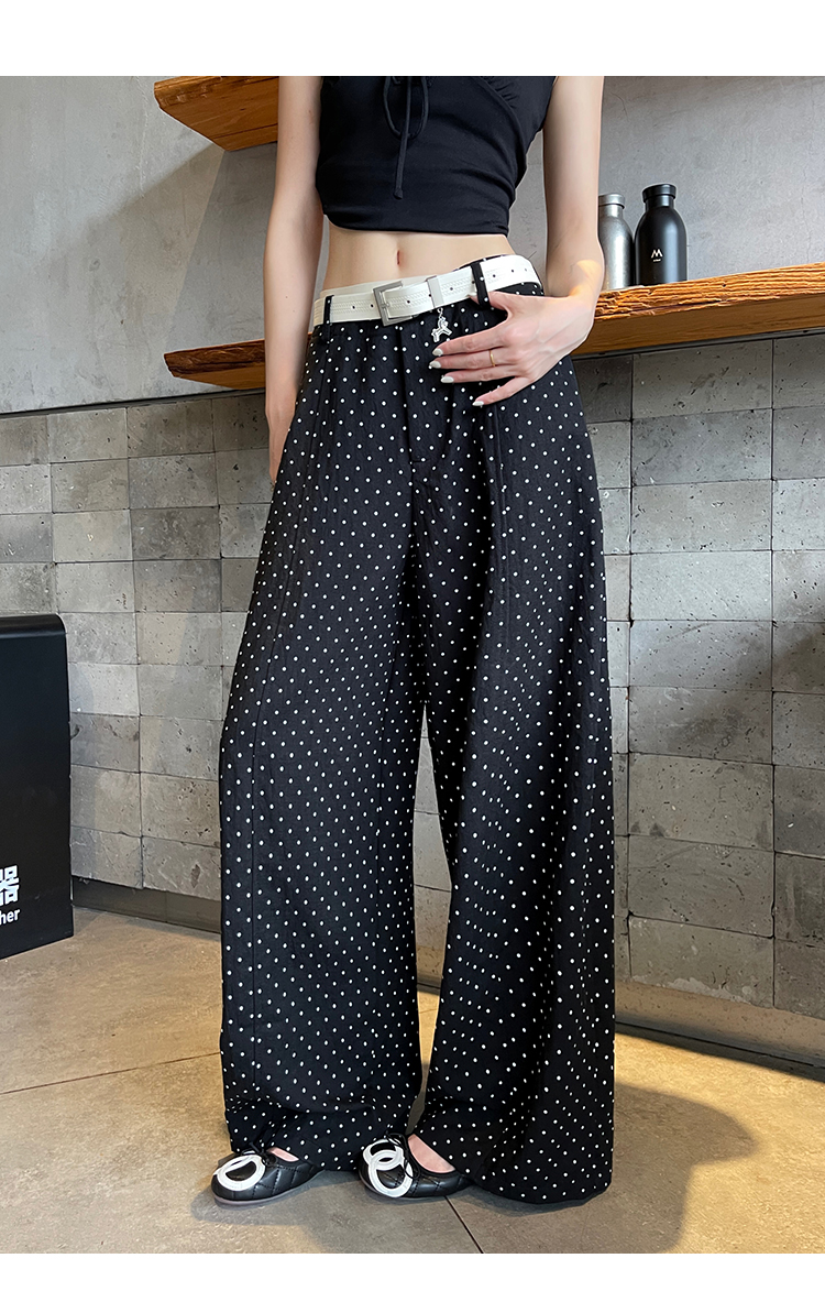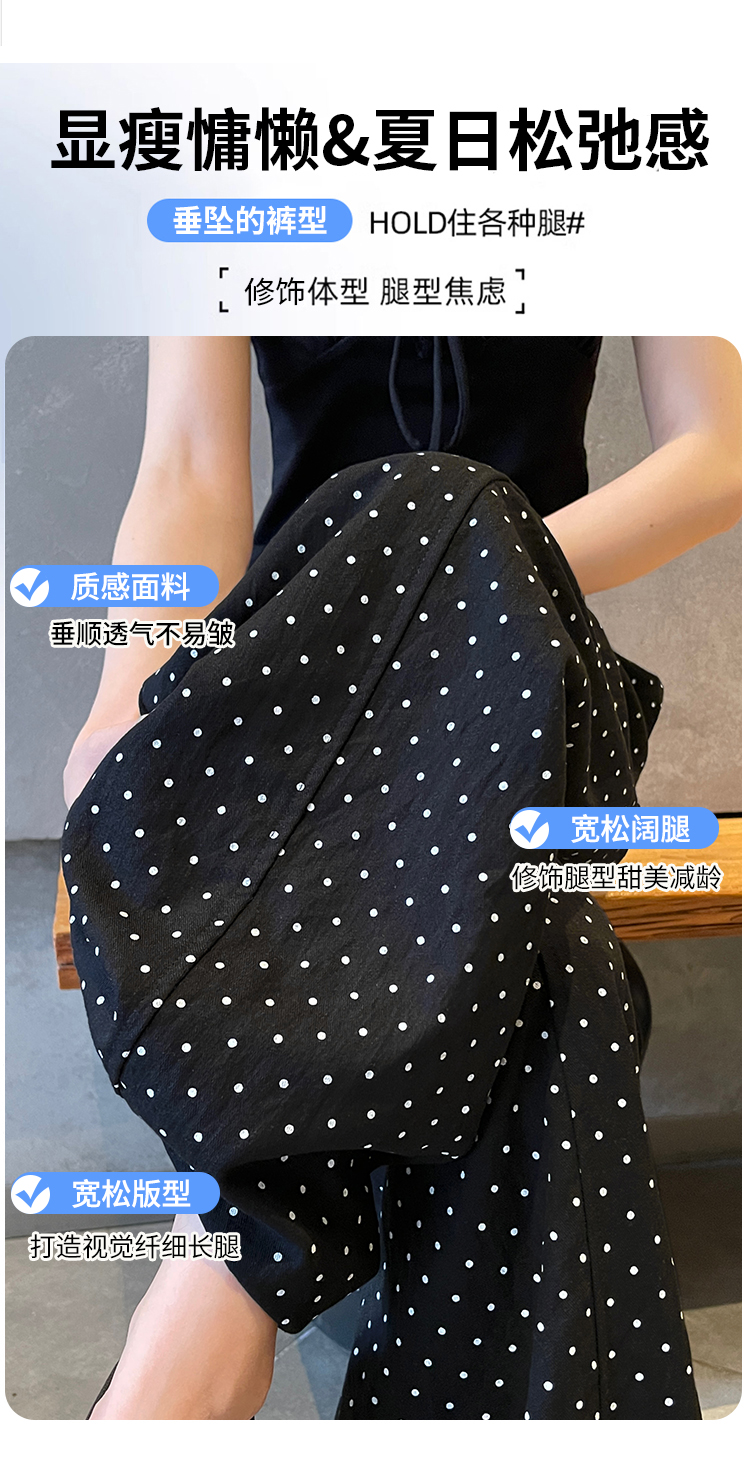 실사 2026 여름 새로운 도트 무늬 루즈핏 와이드 레그 팬츠 하이웨이스트 슬림해 보이는 도루 가을 센스 캐주얼 다용도 긴 바지 여성
