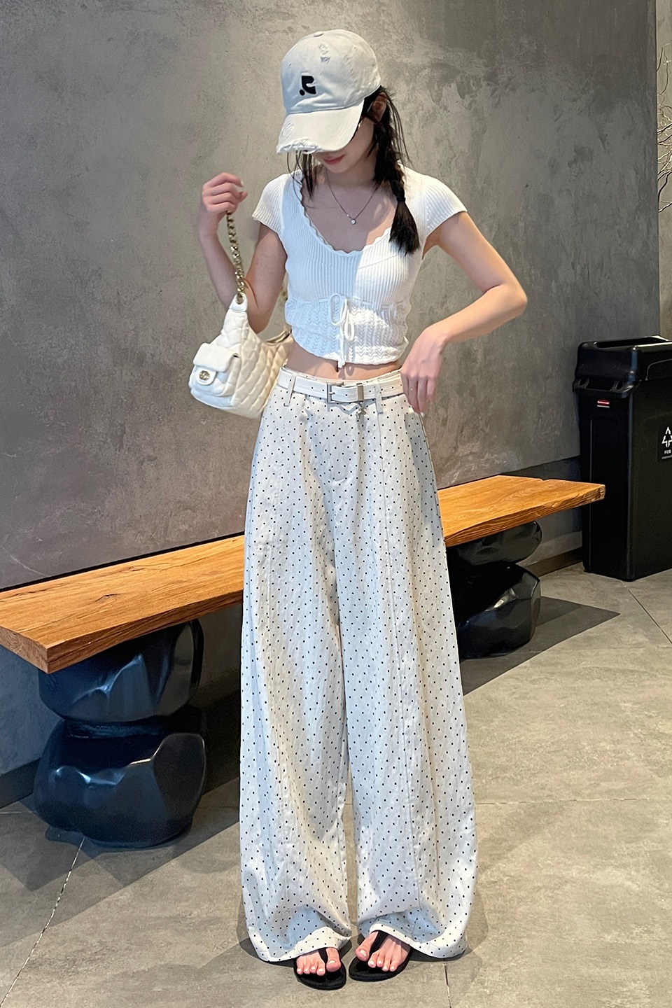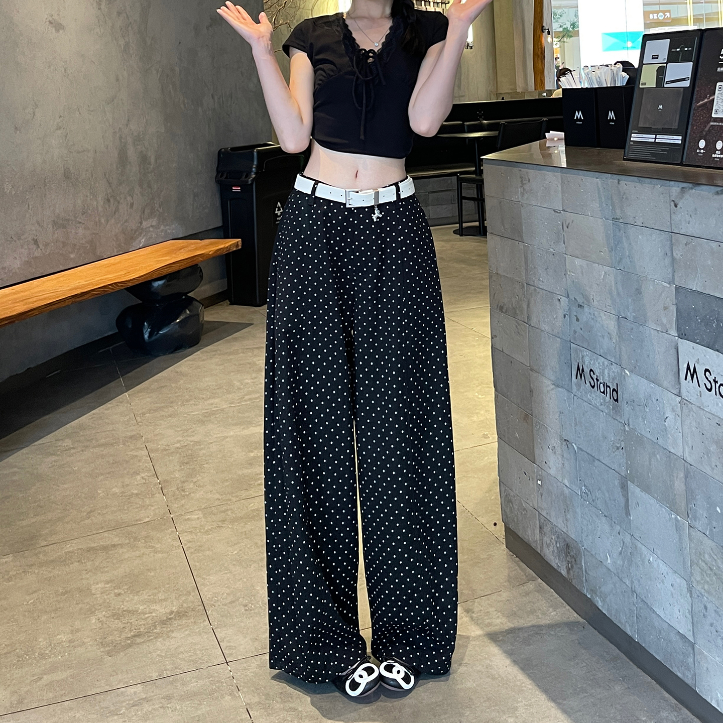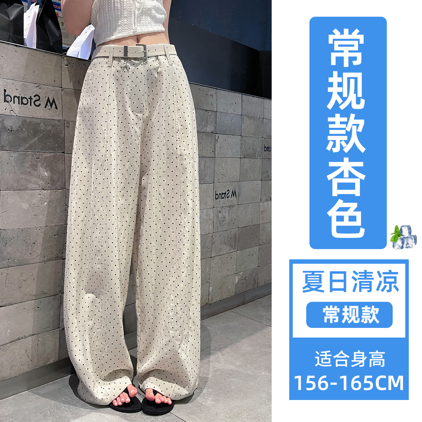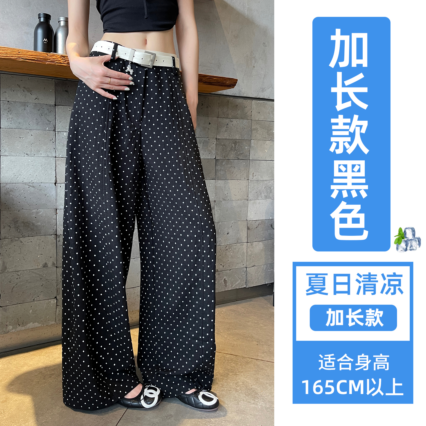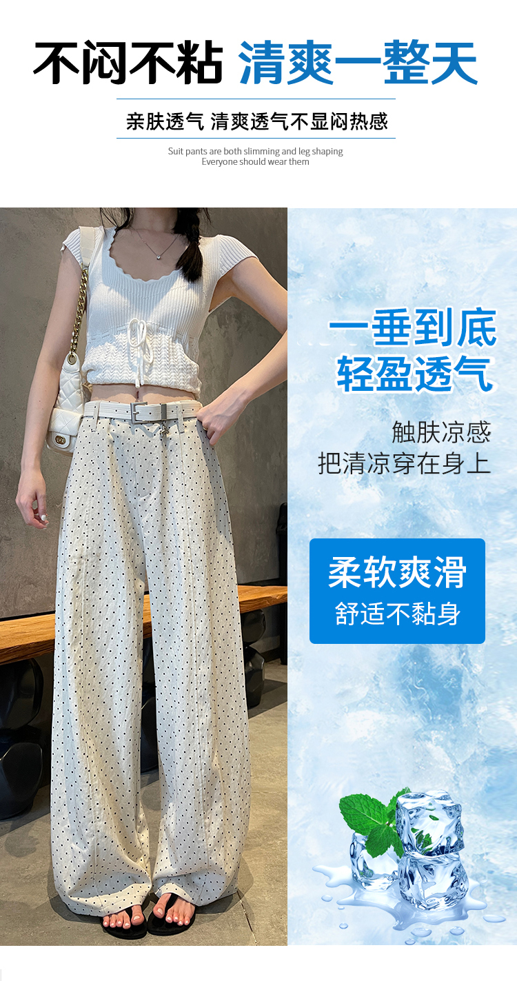 실사 2026 여름 새로운 도트 무늬 루즈핏 와이드 레그 팬츠 하이웨이스트 슬림해 보이는 도루 가을 센스 캐주얼 다용도 긴 바지 여성