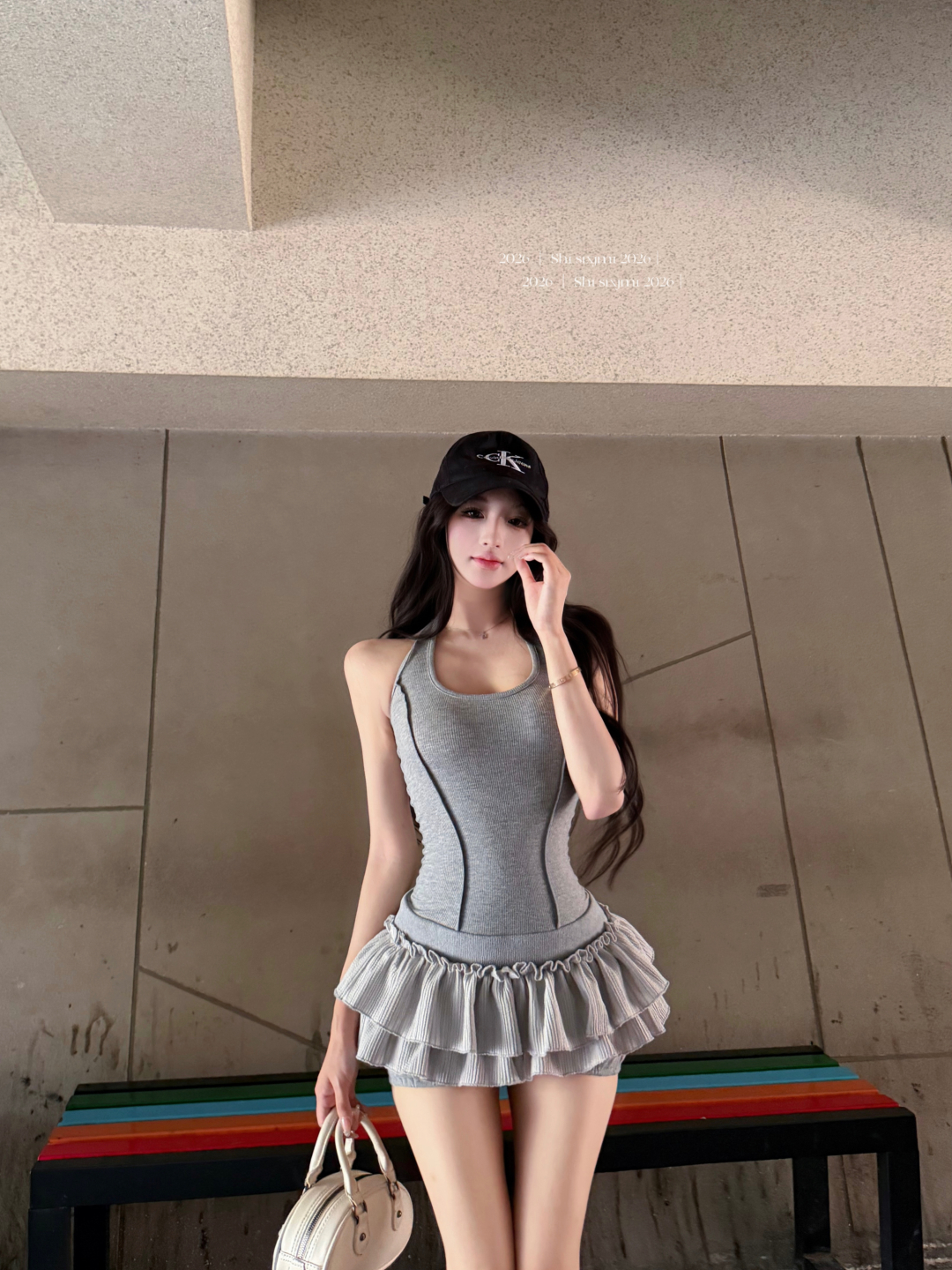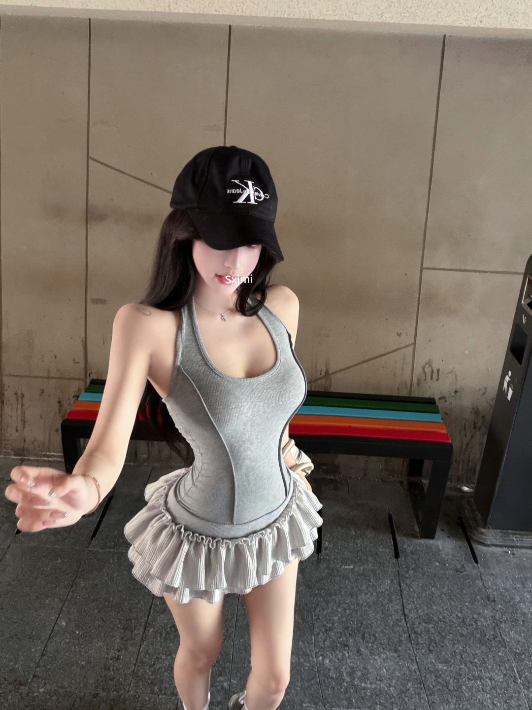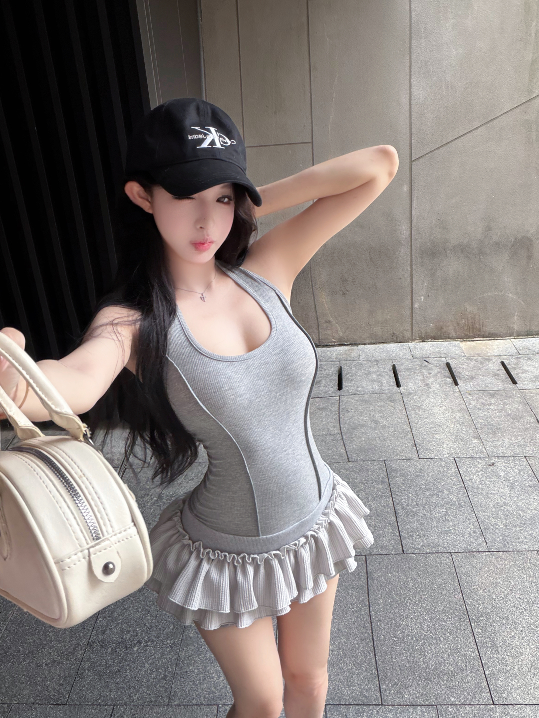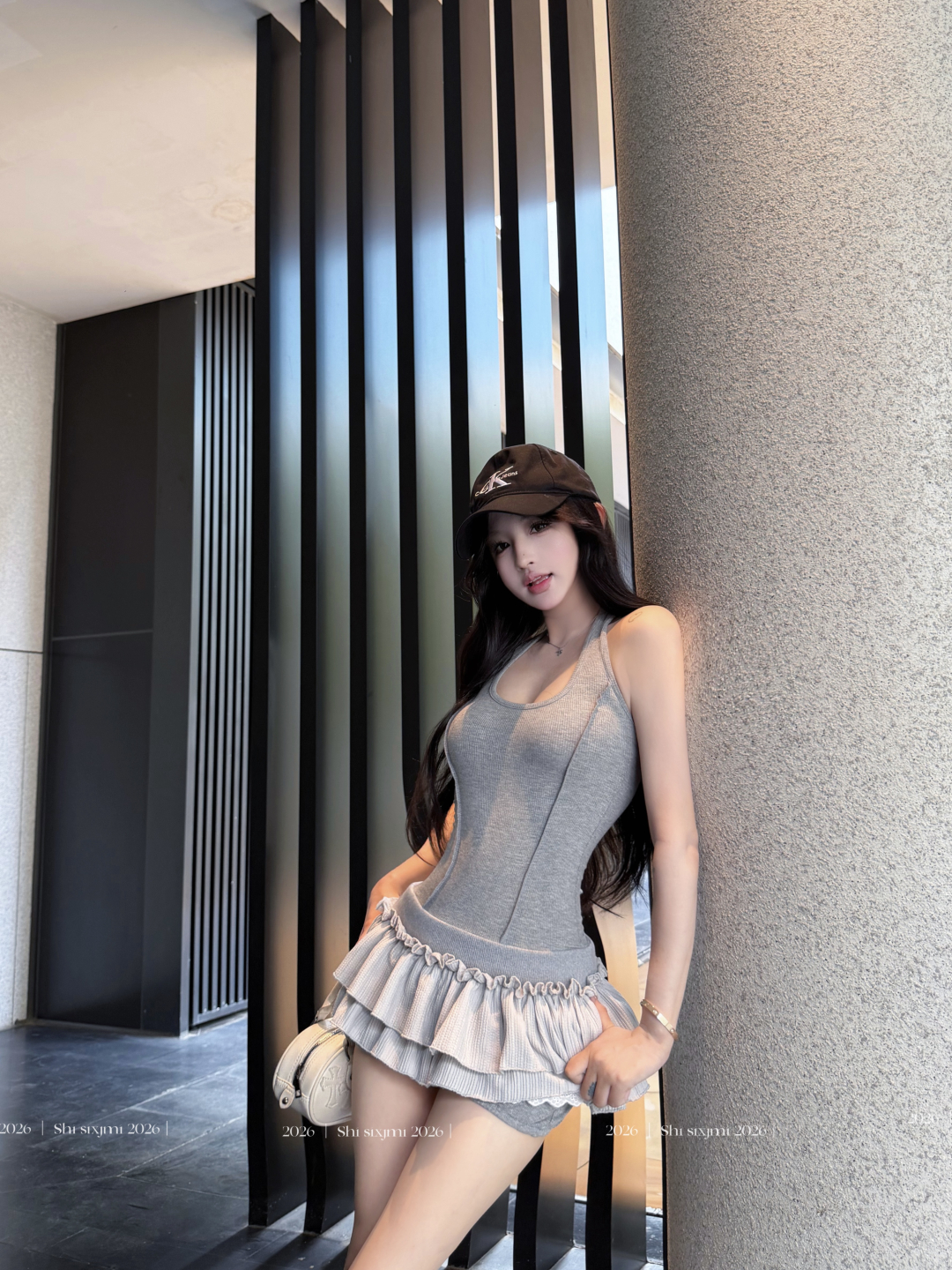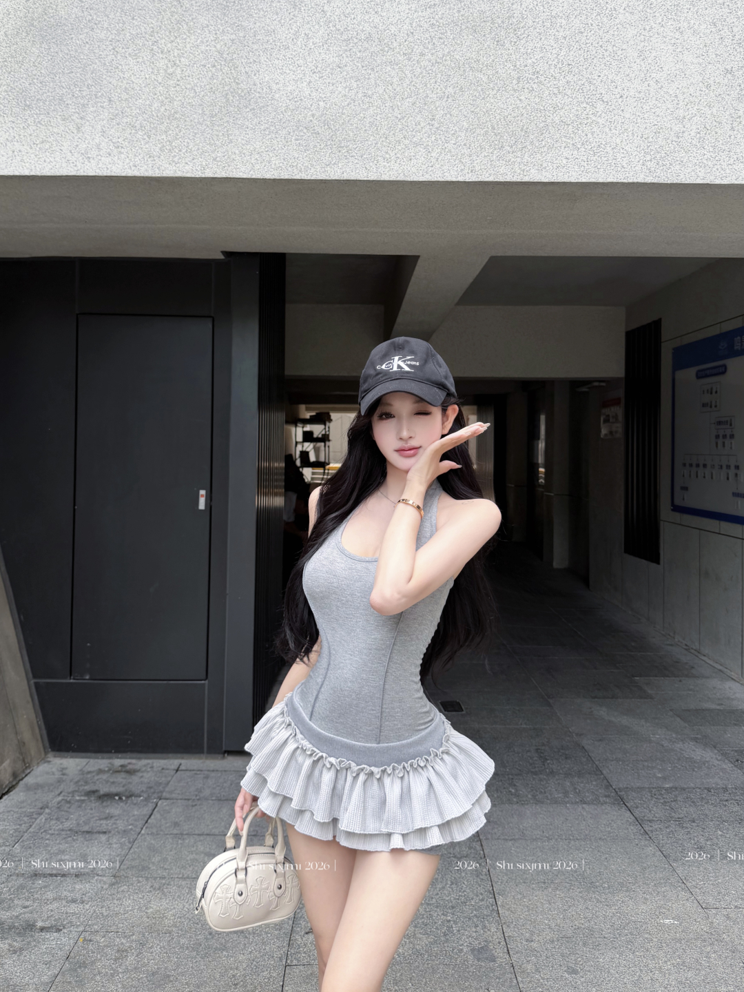 실사 정가 사설 서비스 한 여성 회색 행침 목 몸매 가꾸기 케이크 드레스 섹시함 핫걸 허리 수축 민소매 쇼트 스타일 드레스