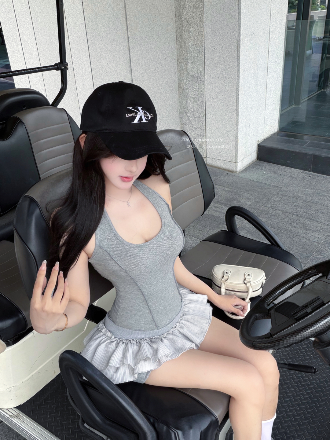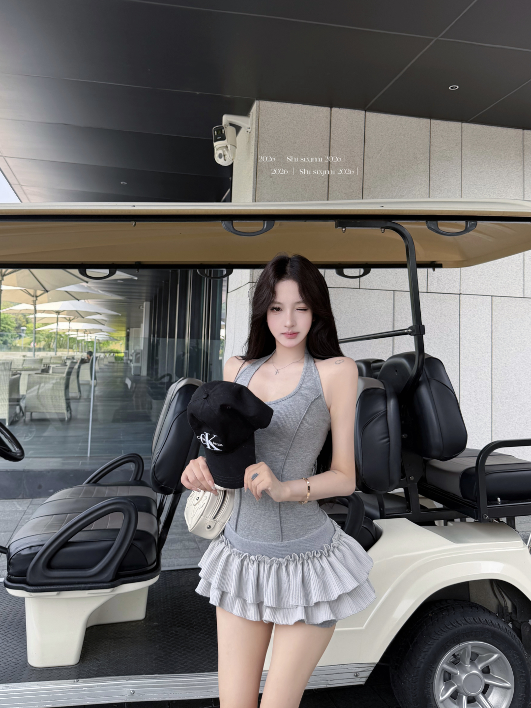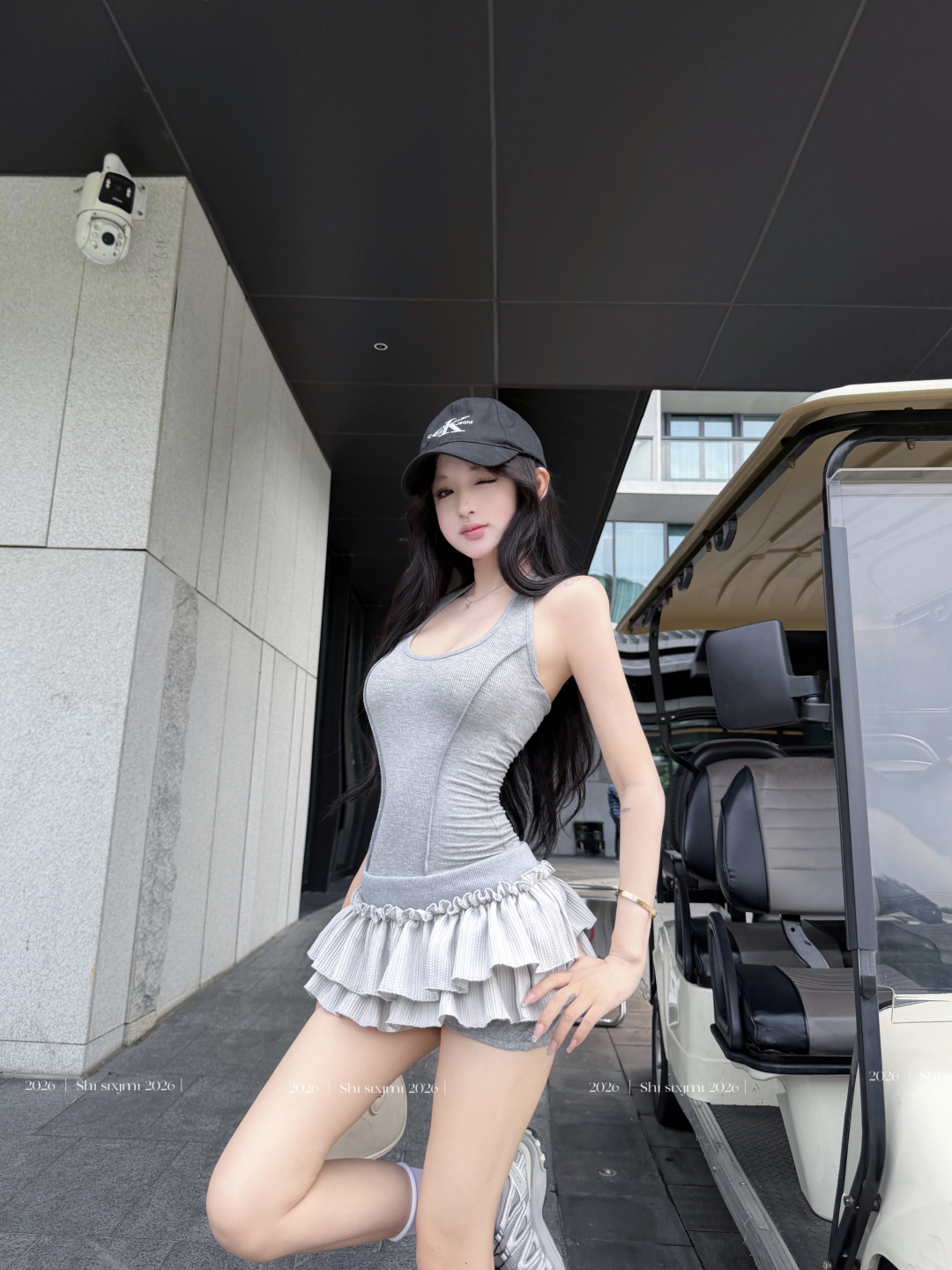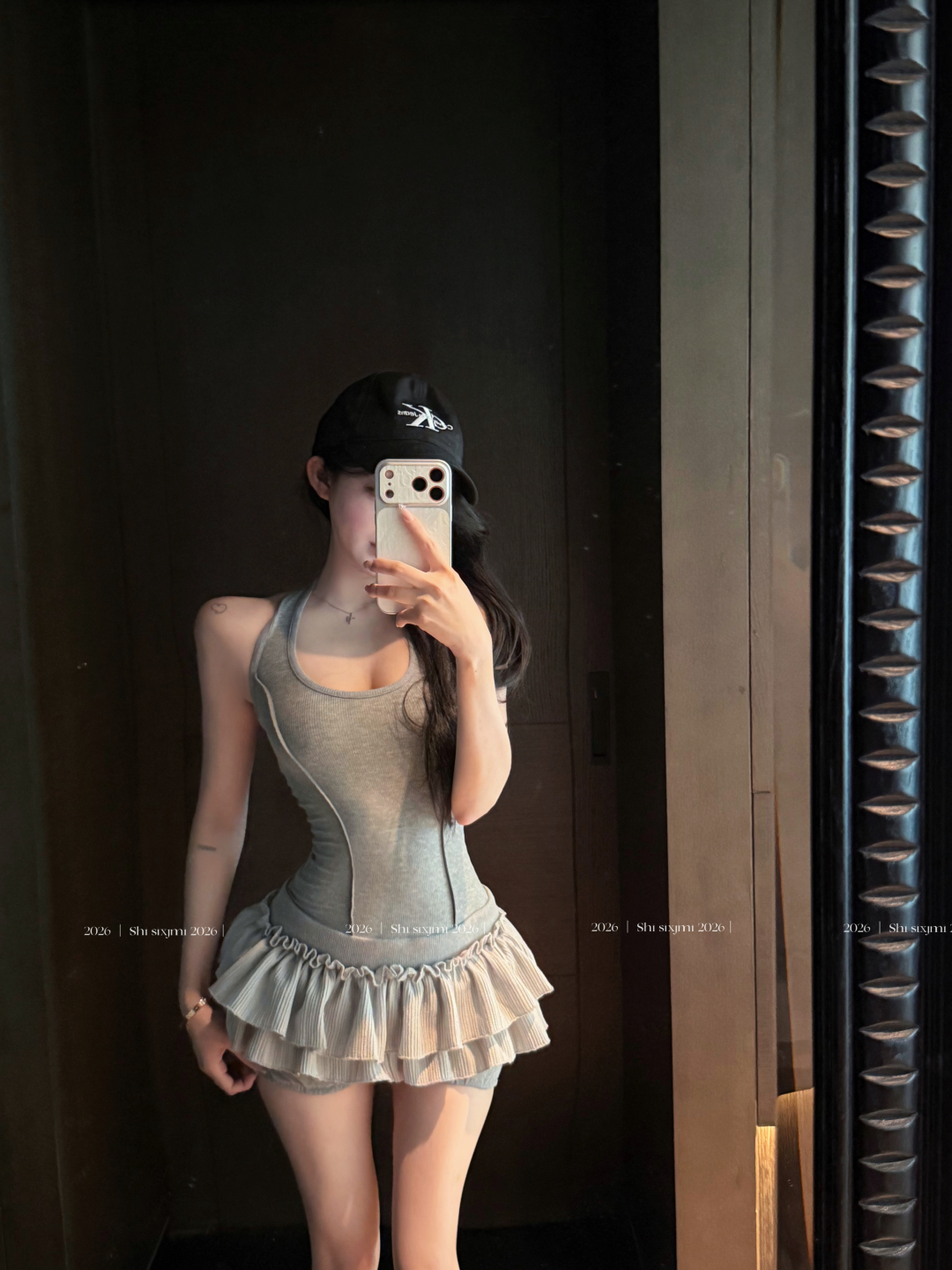 실사 정가 사설 서비스 한 여성 회색 행침 목 몸매 가꾸기 케이크 드레스 섹시함 핫걸 허리 수축 민소매 쇼트 스타일 드레스