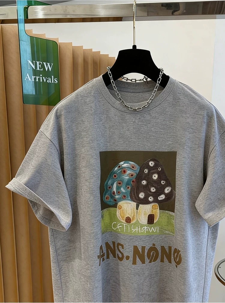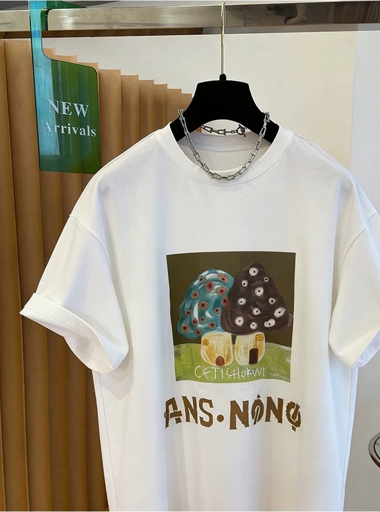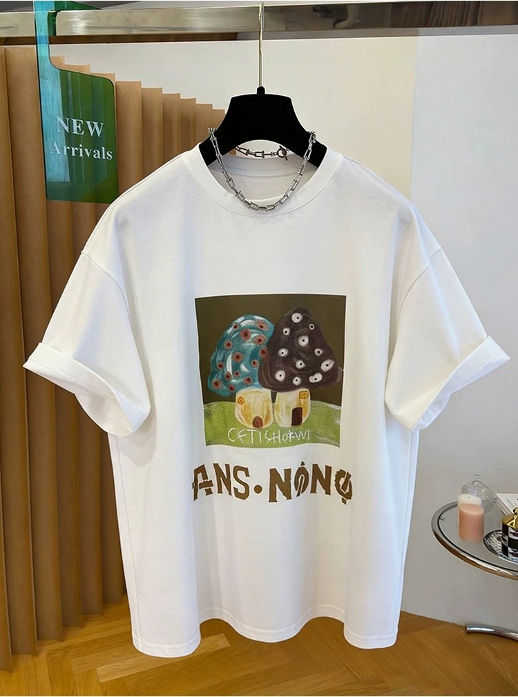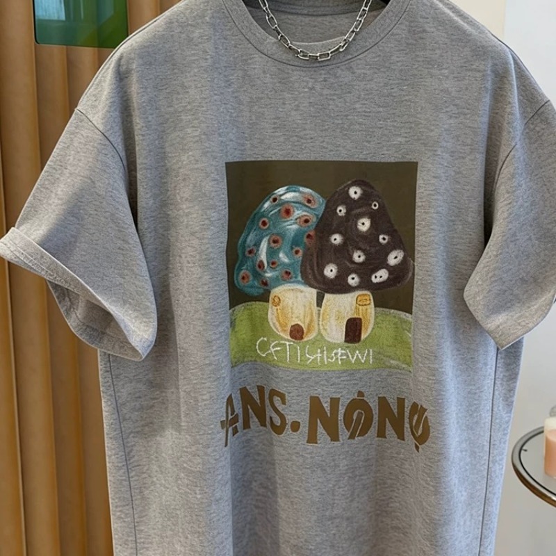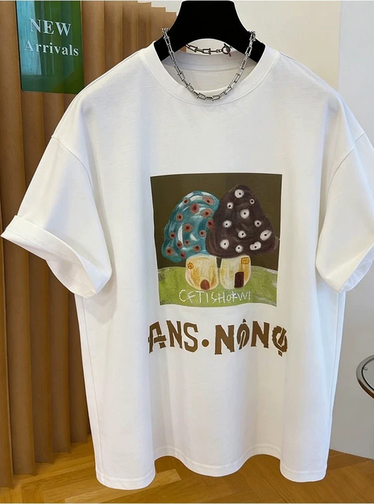 21 순면 210 그램 여름 드레스 느긋한 루즈핏 만화 프린트 반팔 티셔츠 한 부서