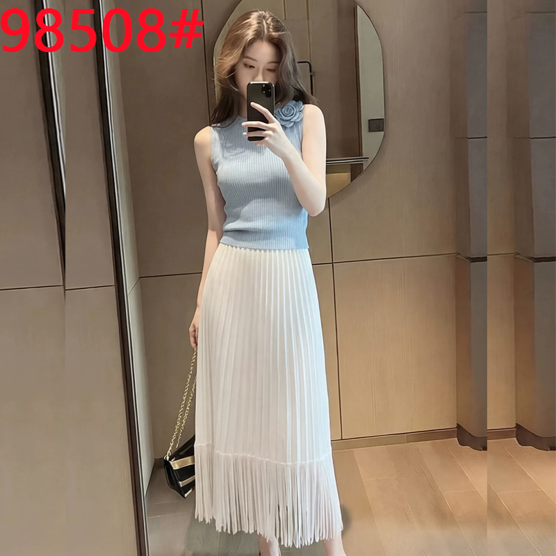 2026 인기 여름 착용 가져 가라. 전체 집합 작은 키 고유 한 아름다운 파란색 맨위 반신 스커트 투피스 슈트 여성
