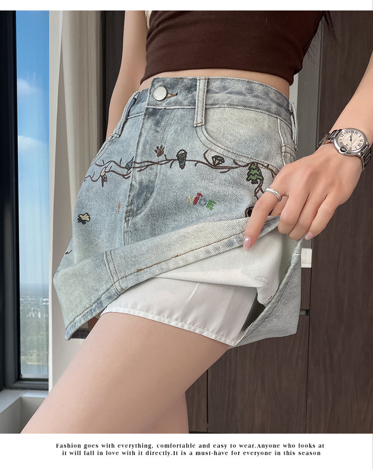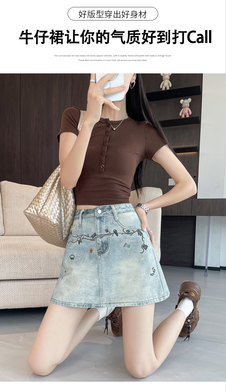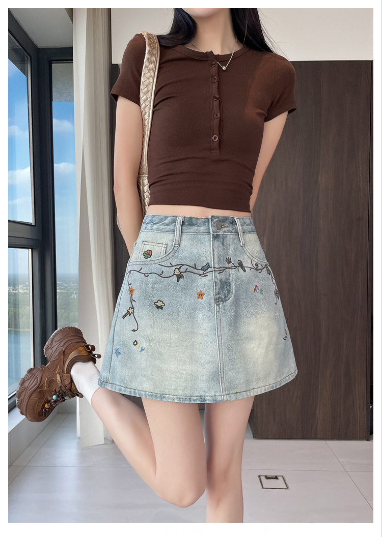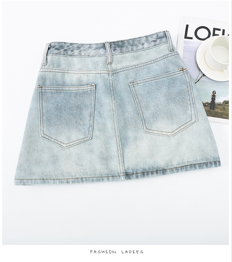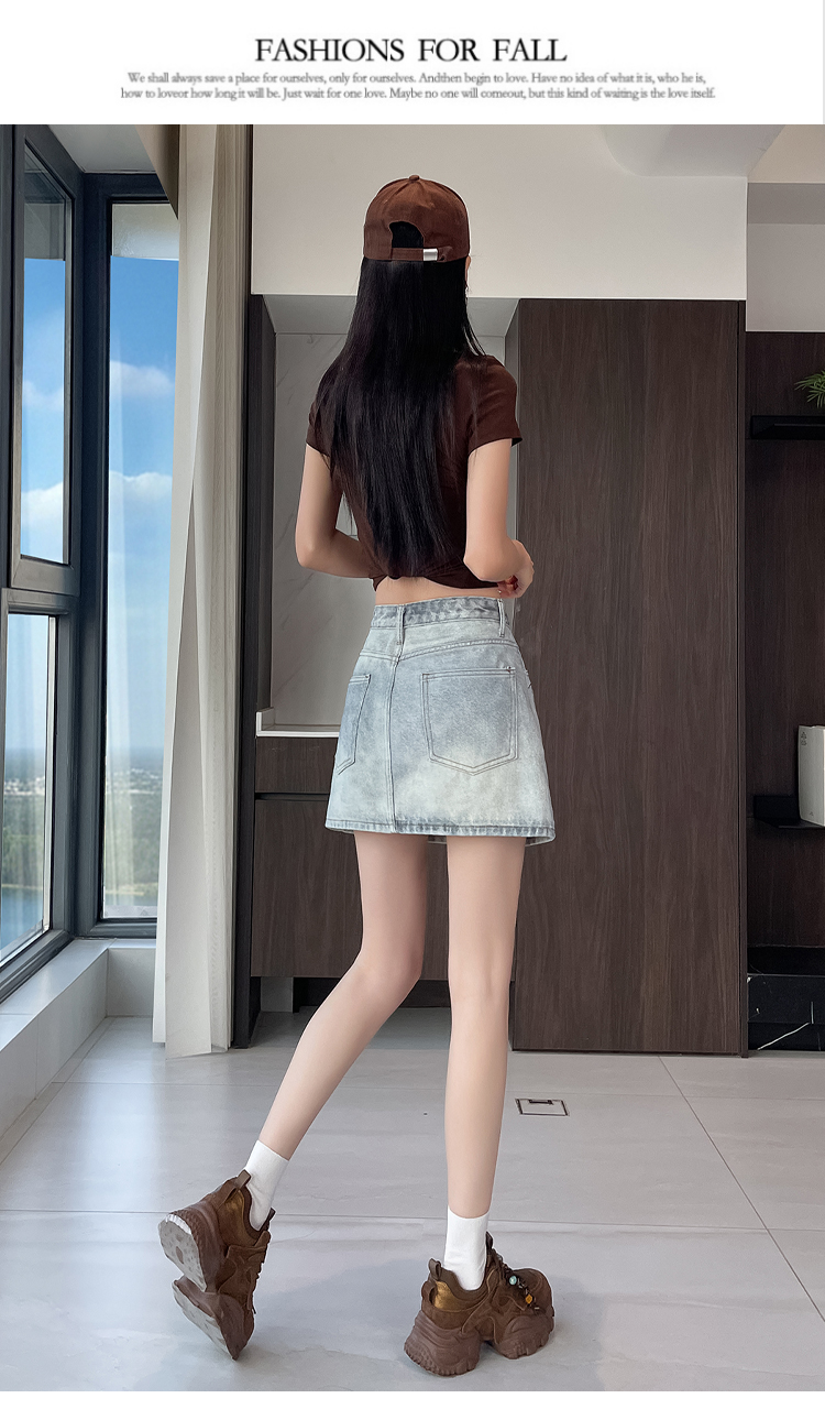 실사 2026 여름 새로운 레트로 워싱 데님 미니 스커트 디자인 센스 하이웨이스트 연령 감소 슬림해 보이는 A라인 스커트