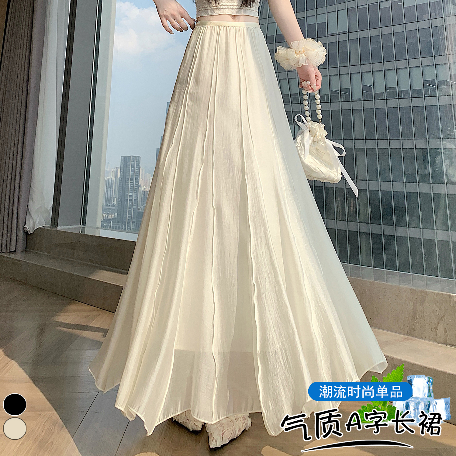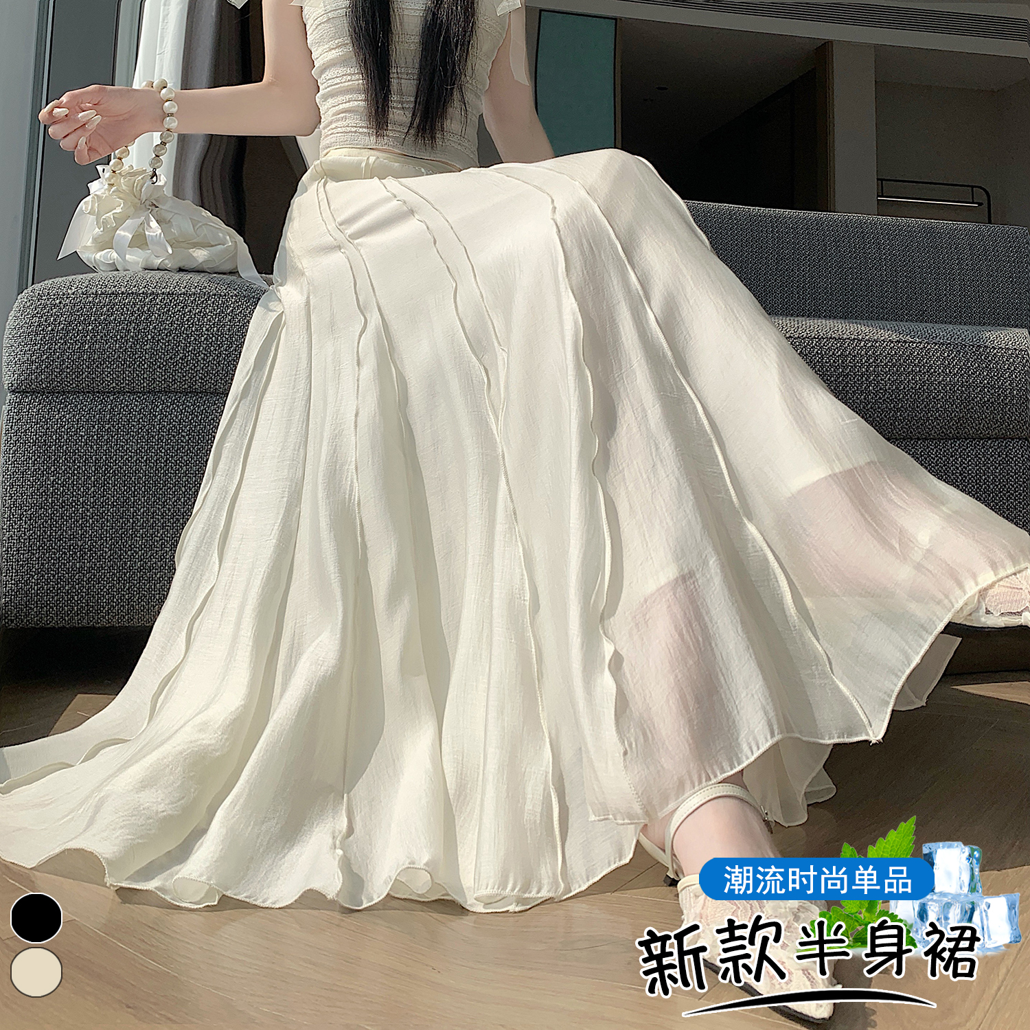 실사 프랑스식 헤일로 염색 깃발 실 롱 스커트 여성 여름 새로운 루즈핏 슬림해 보이는 반신 스커트 도루 가을 센스 플리츠 한 마디