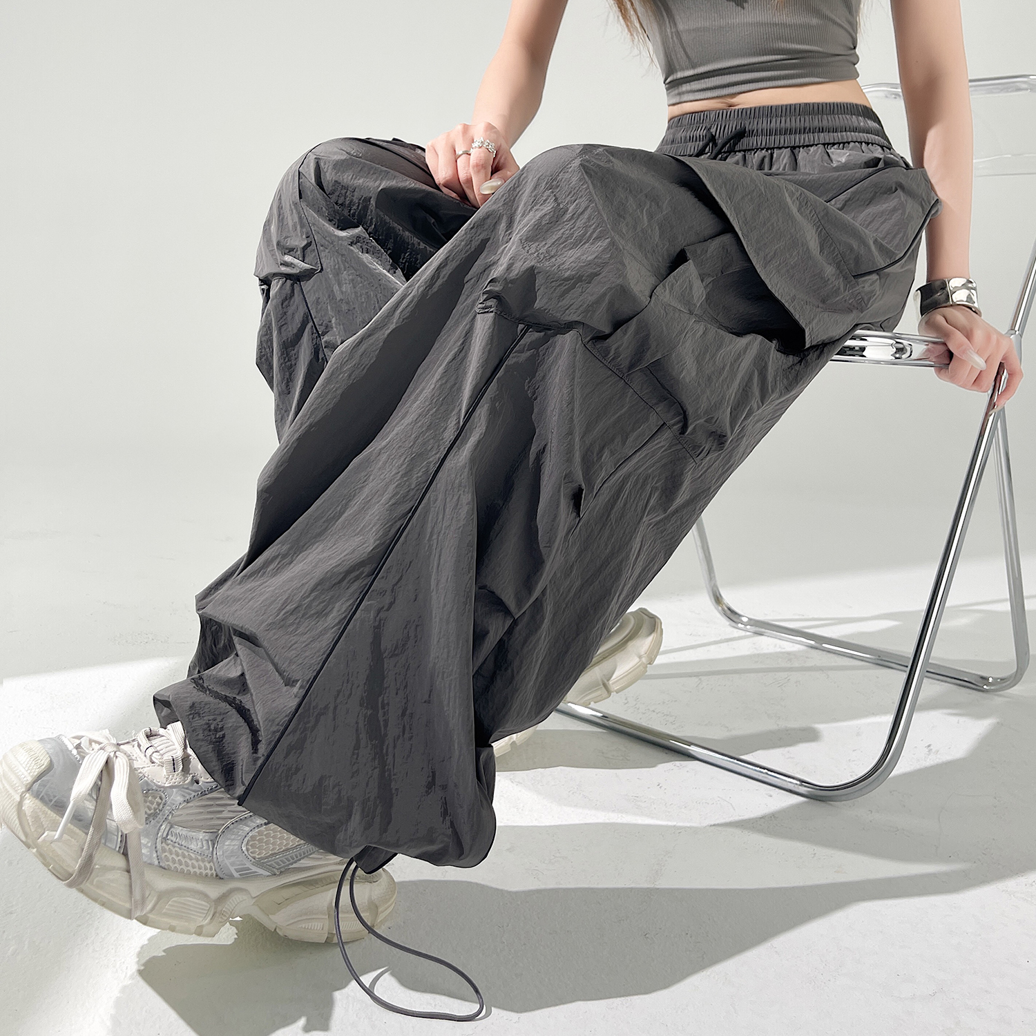 실사 여름 얇은 스타일 둘 착용 디자인 센스 주머니 워크웨어 팬츠 여성 하이웨이스트 펌프 로프 조거 속도 건조한 캐주얼 바지