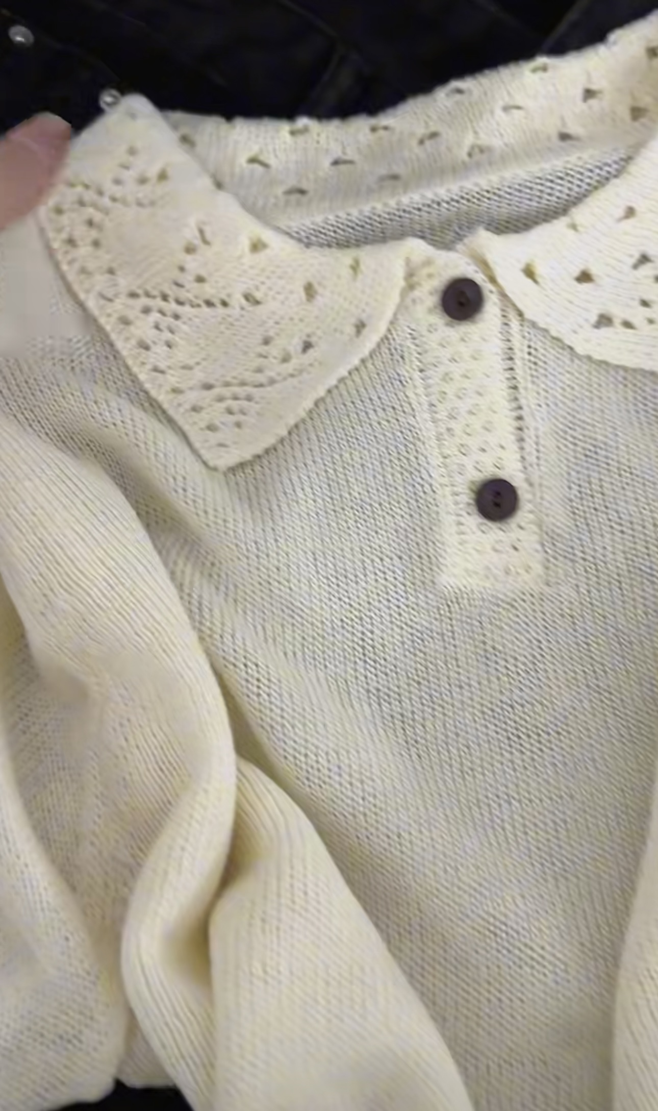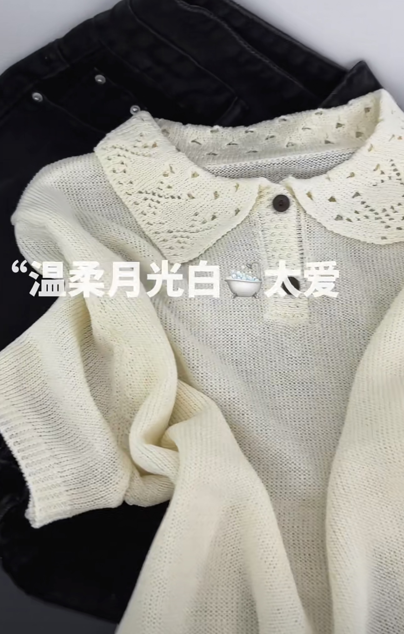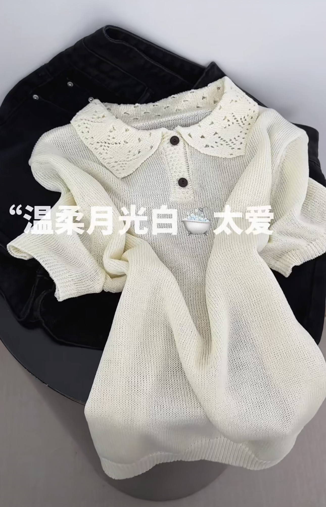 한 부서 목이버섯 레이스 화이트 홀로우 아웃 반팔 니트 오픈 가디건 여성 여름 슬림해 보이는 얇은 스타일 맨위