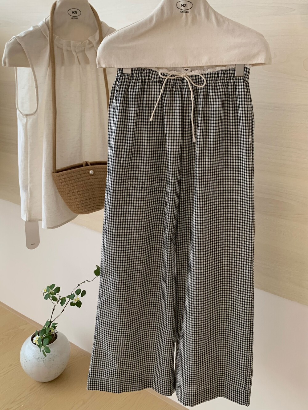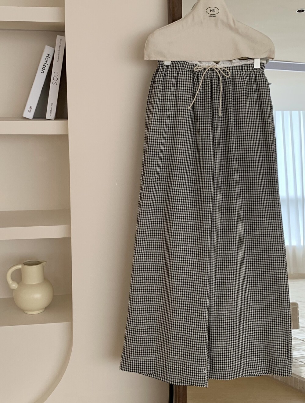 한 바람 chic 허리밴드 흑인과 백인 체크무늬 스트레이트 캐주얼 바지 여성 루즈핏 도루 가을 센스 하이웨이스트 와이드 레그 팬츠