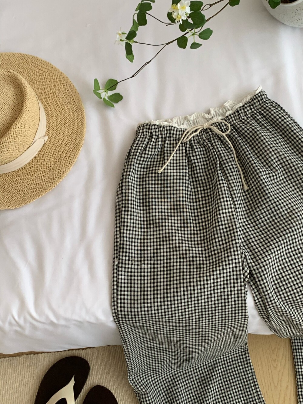 실사 프릴 방귀 커튼 캐주얼 바지 2026 여름 조거 둘 착용 달콤함 풍선 바지 작은 키 와이드 레그 팬츠