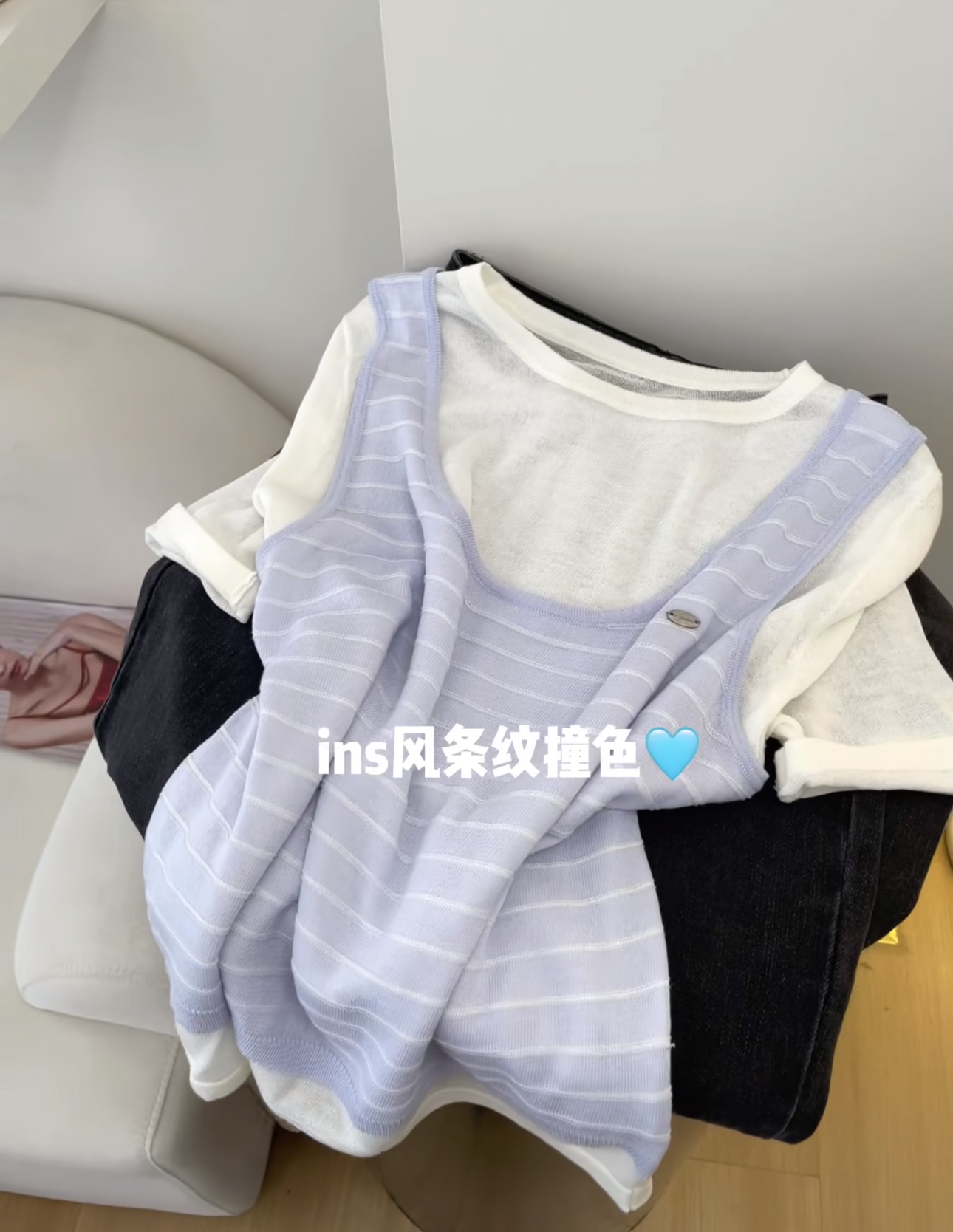 여름 도파민 배색 스트라이프 반팔 티셔츠 여름 부드러운 바람 슬림해 보이는 디스플레이 화이트 니트 스웨터 캐주얼 맨위