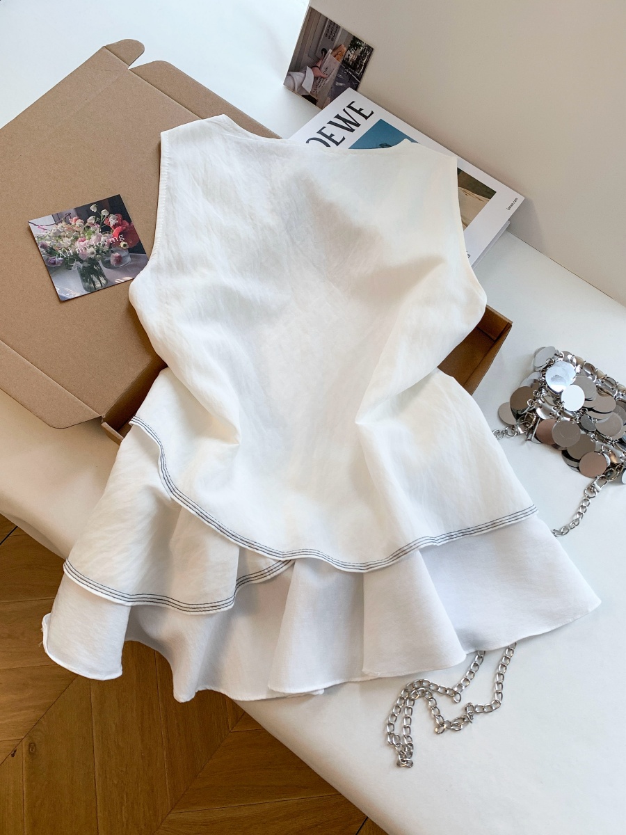 여름 새로운 달콤함 품격 3 차원 기타 레이스업 디자인 센스 행침 목 조끼 슬립