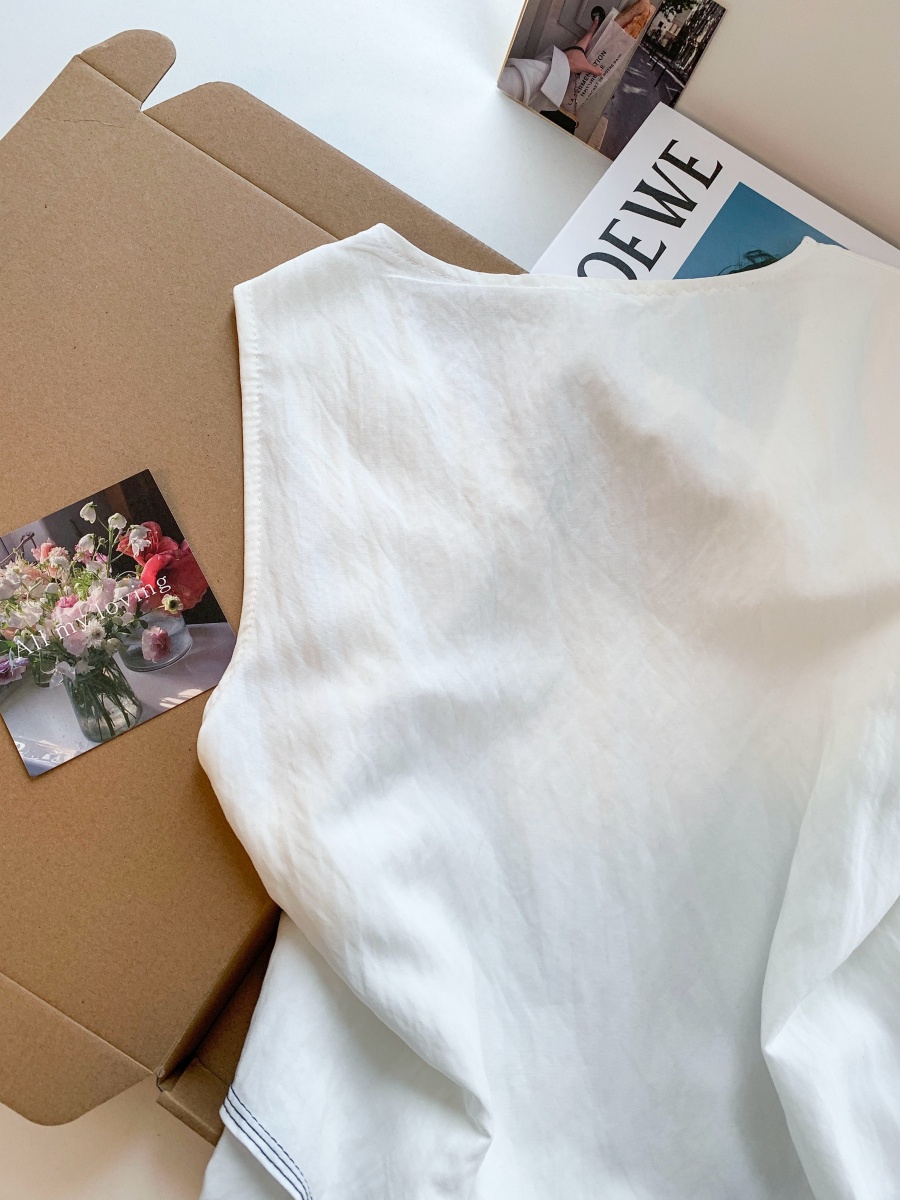 프랑스식 프릴 패치워크 레이스업 거품 소매 반팔 맨위 여성 연령 감소 슬림해 보이는 표지 배 디자인 센스 셔츠